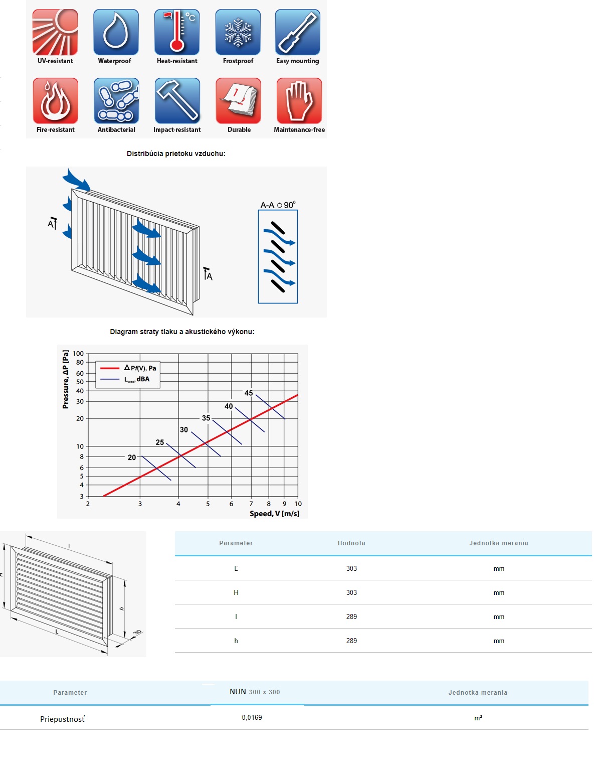 Vetracia mriežka na fasádu plastová biela bez sieťky.Krycia plocha:303x303mm pre otvor 289x289mm:materiál:ABS plast.odolný proti UV žiareniu.Vetracia