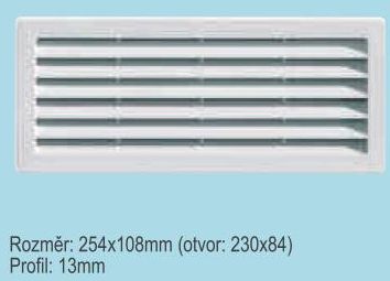 vetracích otvorov.Rozmery:Krycia plocha 254x108mm do otvoru 230×84 mm.Ventilačná mriežka so sieťkou .Materiál:ABS