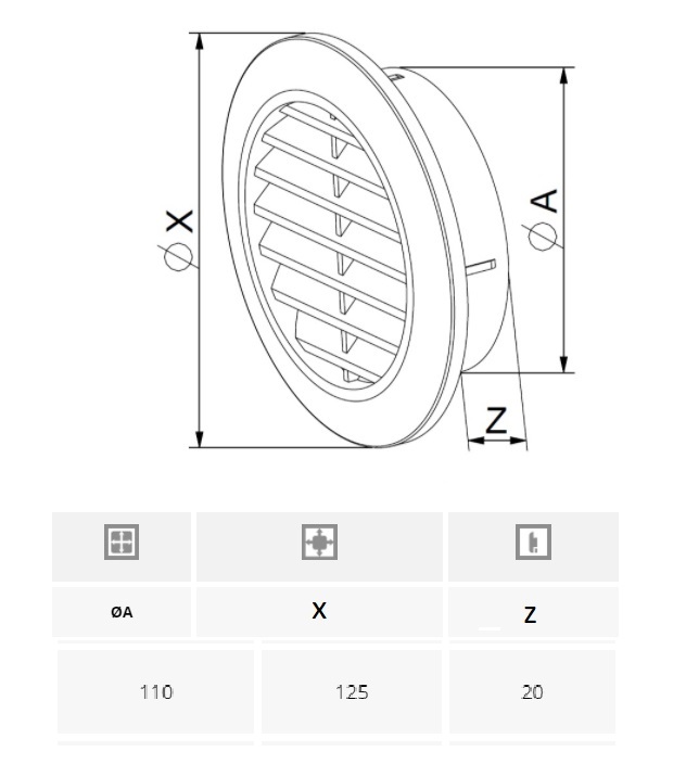 mriežky plastové.Vnútorný rozmer:110mm,Krycia plocha:125mm.Farba:biela-so