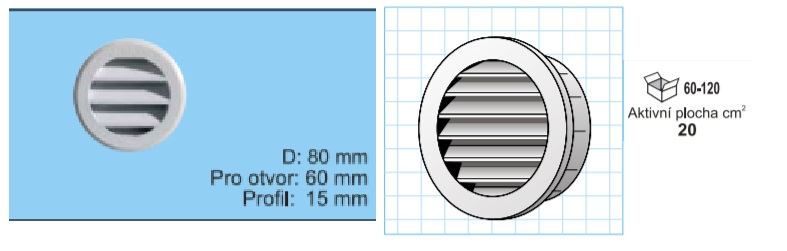 plocha:80mm.Farba:biela bez sieťky proti hmyzu.Materiál: ABS