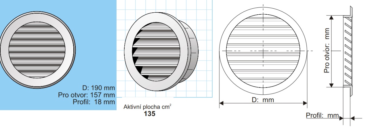plocha:190mm.Farba:biela bez sieťky proti hmyzu.Materiál: ABS