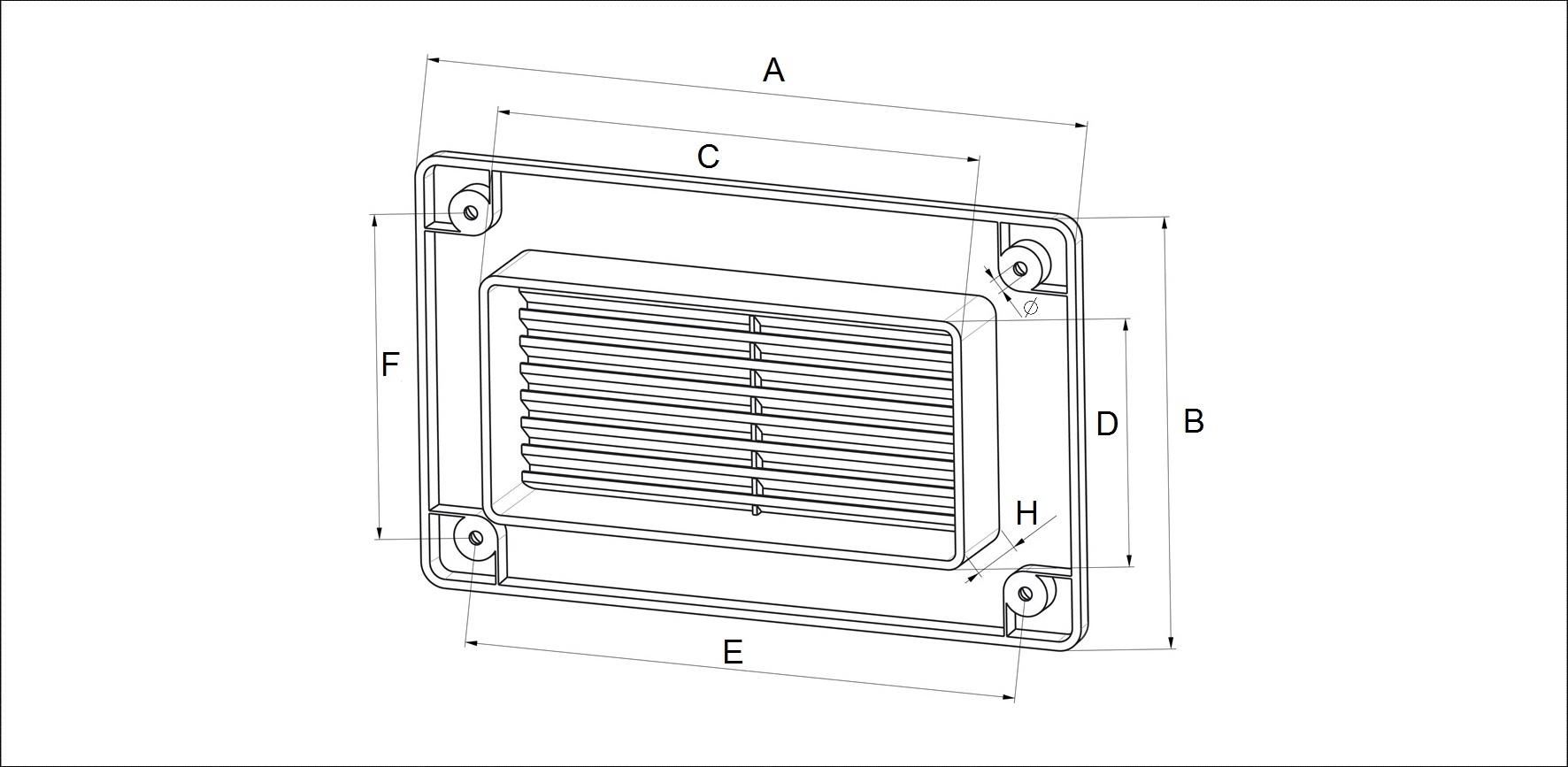 55x110mm.Materiál ABS plast odolný UV žiareniu Mriežka ukončovacia pre