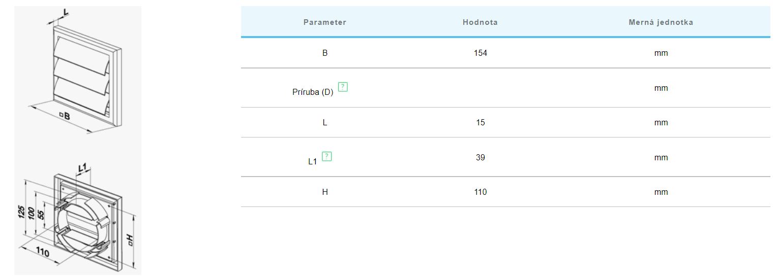 Gravitačná mriežka univerzálna -s prírubou 100mm-55x110mm a 125mm .Dekorácia prívodných a výfukových prieduchov verejných, bytových a priemyselných ventilačných systémov.