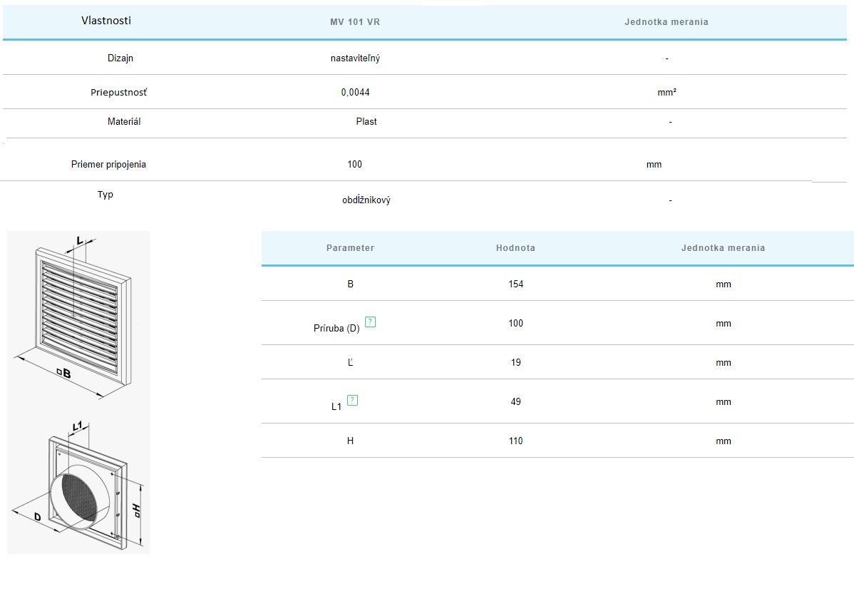 Vetracie mriežky plastové so zatváraním krycia plocha 154×154/100mm sa