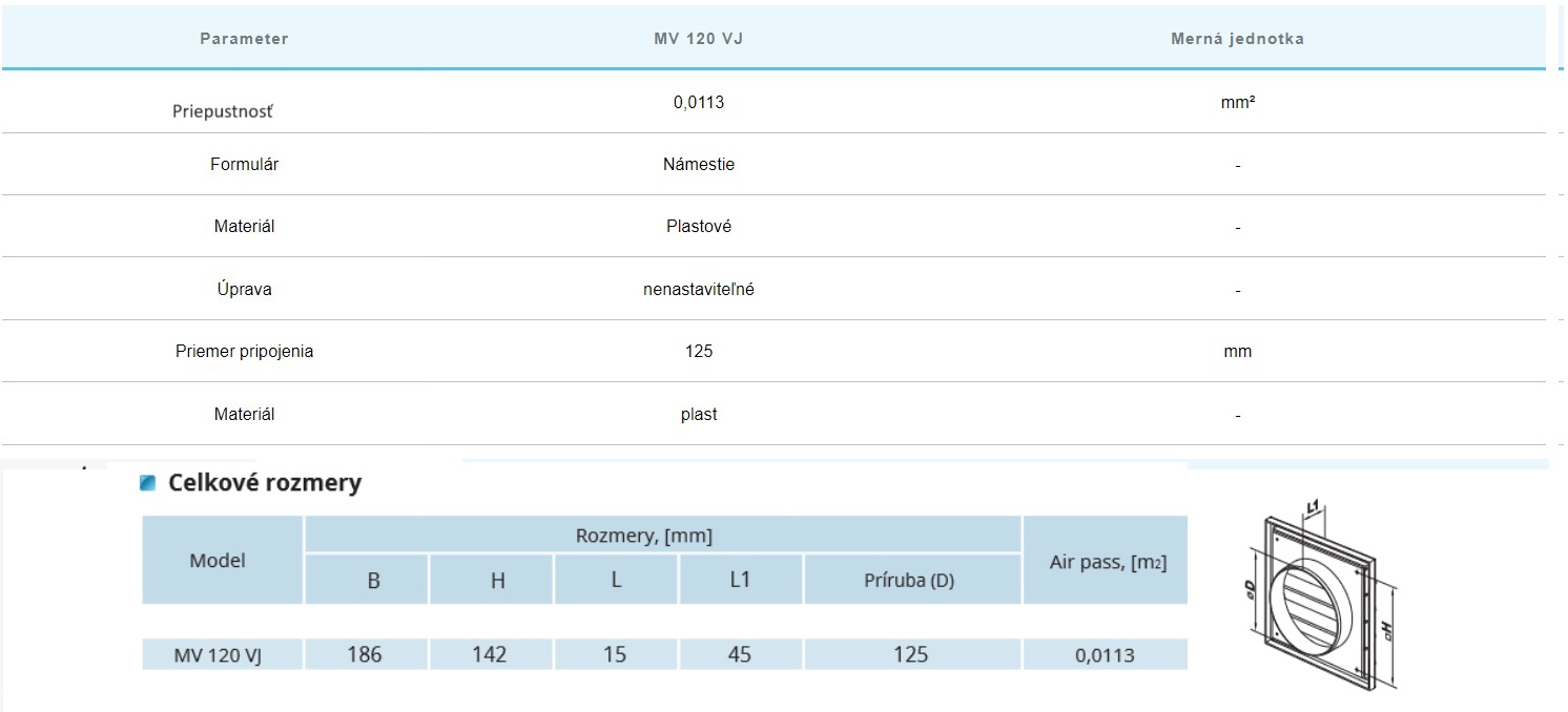 systémov.Krycia plocha: 186x186mm.Gravitačná mriežka plastová na