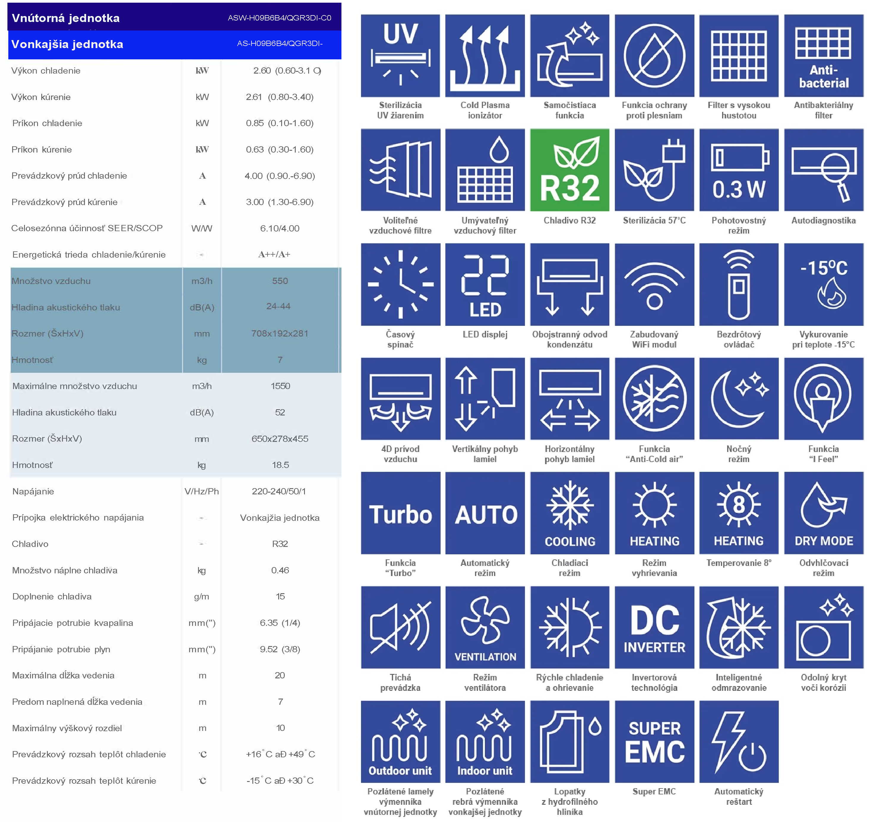 Invertorová technológia a energetická trieda A++ zabezpečujú vysokú energetickú účinnosť a spoľahlivosť. Je ideálny pre miestnosti s rozlohou 10–25 m²
