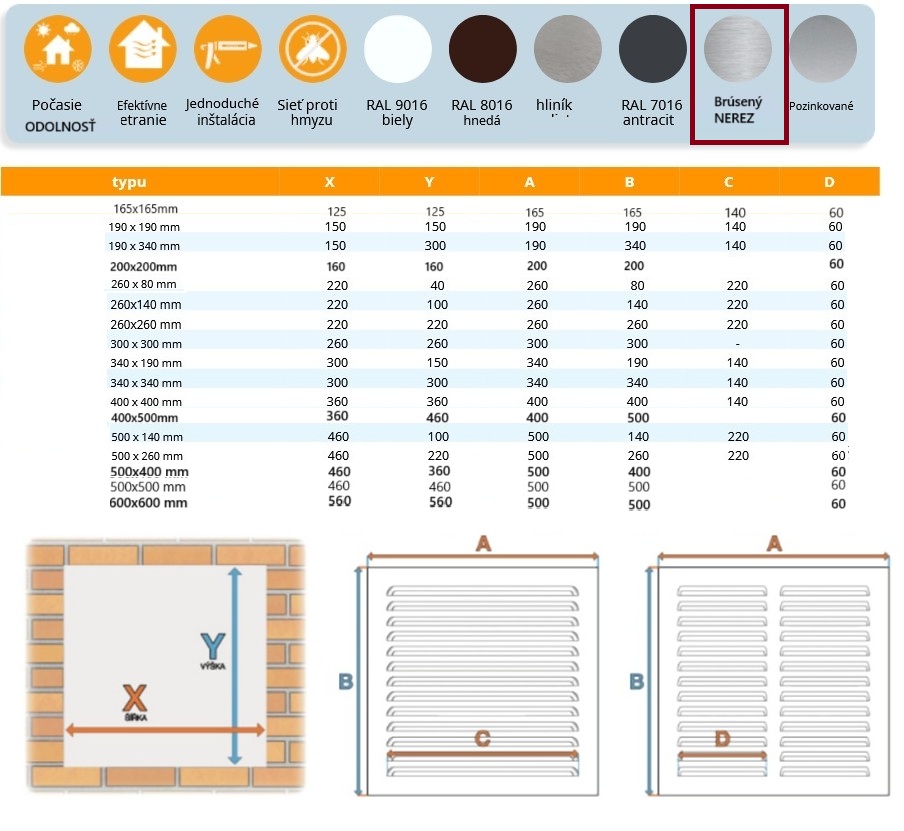 mriežky:Materiál brúsený nerezový plech, 1.4301, AISI 304, brus 240.Sila