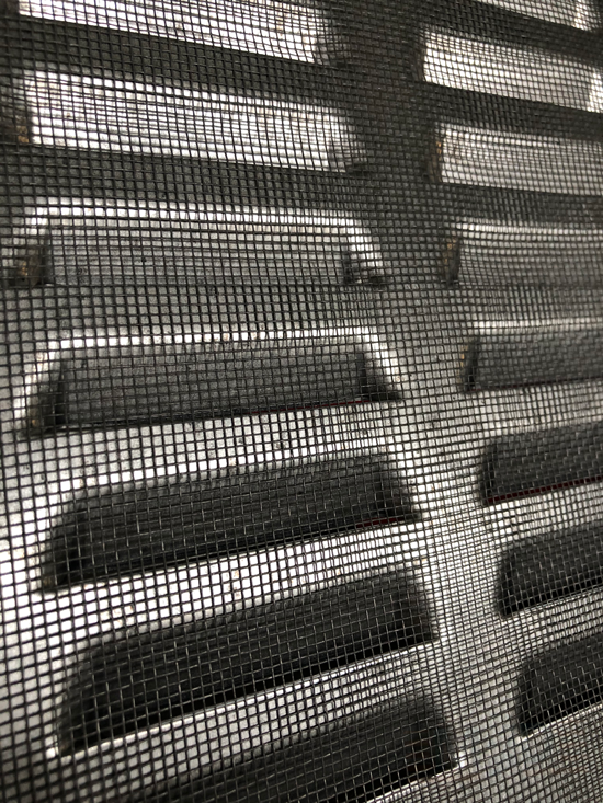 menšie, otvory v rohoch pre skrutky.Na zadnej strane mriežky je sieťka