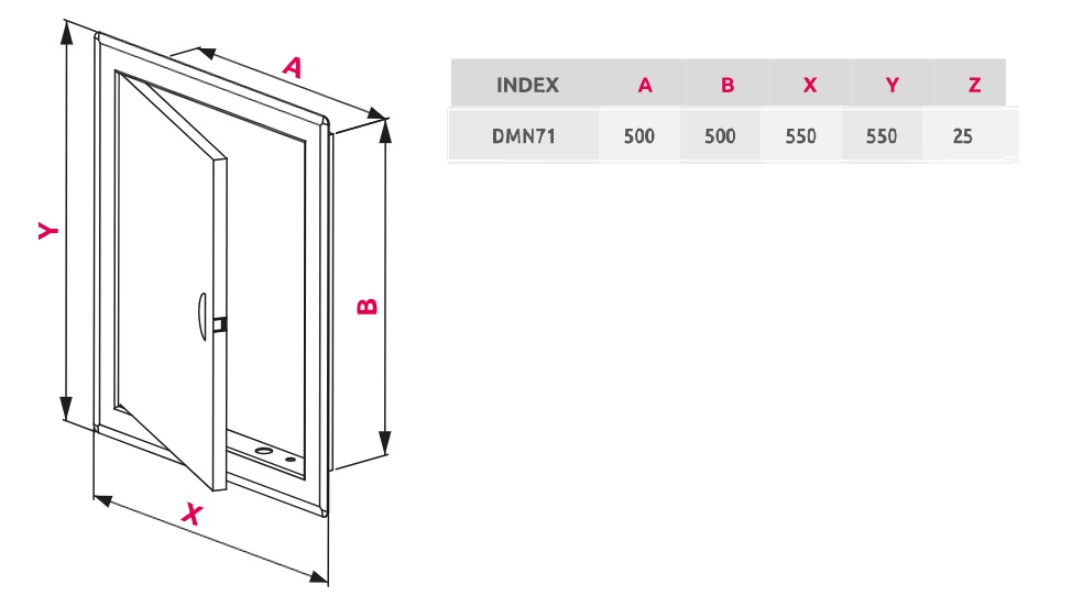 plechu.Revízne dvierka tvorí :vonkajší rám, ktorý pomocou lemu zakrýva