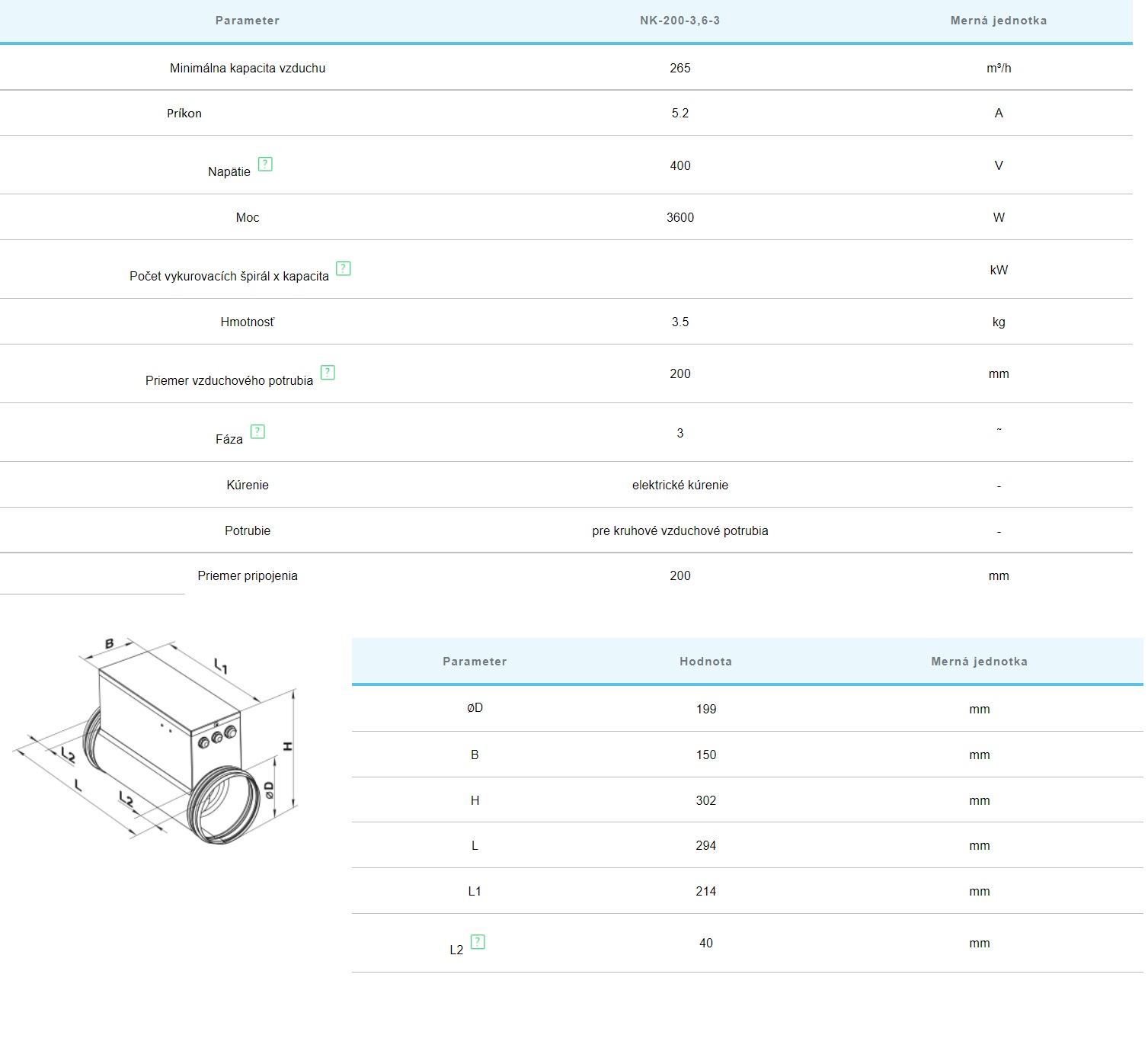 Potrubné elektrické ohrievače 200mm 3,6KW 3fázový 380V sú určené na