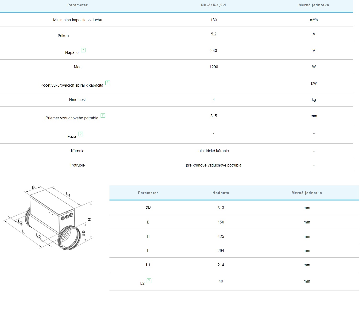 Potrubné elektrické ohrievače 315mm 1,2KW 1fázový 230V sú určené na