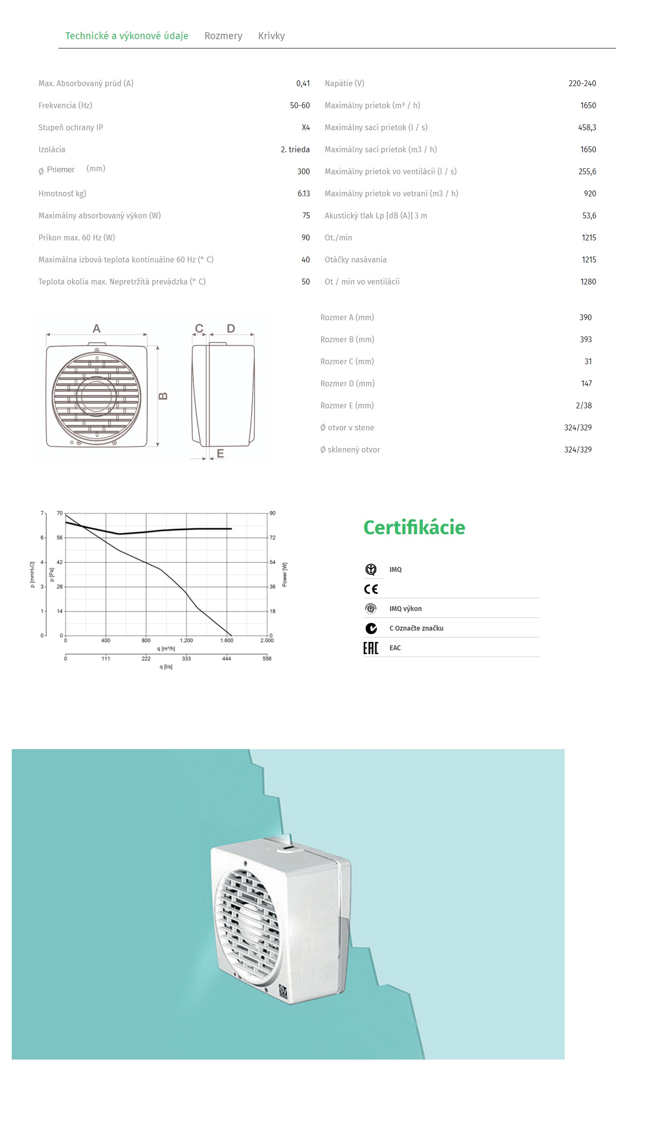 Okenný ventilátor VORTICE VARIO V 300/12″ AR LL S – Výkon 1650/920 m3/h – guľôčkové ložisko (prívod alebo odsávanie vzduchu) Funkcia reverzibilný (prívod alebo odsávanie vzduchu). • Automatická žaluzia: zabraňuje vstupu studeného vzduchu a zápachu, keď je spotrebič vypnutý. • Konštrukcia „odolná voči UV žiareniu“ z ABS plastovej živice odolnej voči starnutiu vplyvom slnečného žiarenia. • Menovitý priemer 300 mm. • Tepelne chránený motor, s hriadeľom uloženým na podperách guľôčkových ložiskách, kombinovaný so špirálovým obežným kolesom z termoplastického materiálu s lopatkami profilu krídla. • Bezpečnosť a výkon certifikované IMQ a IMQ PERFORMANCE.