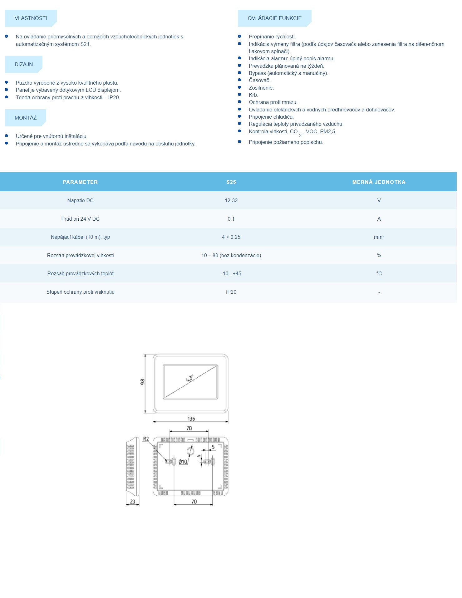 Ovládací panel S25 so senzorovým displejom slúži na ovládanie rekuperačných jednotiek s automatizačným systémom S21.