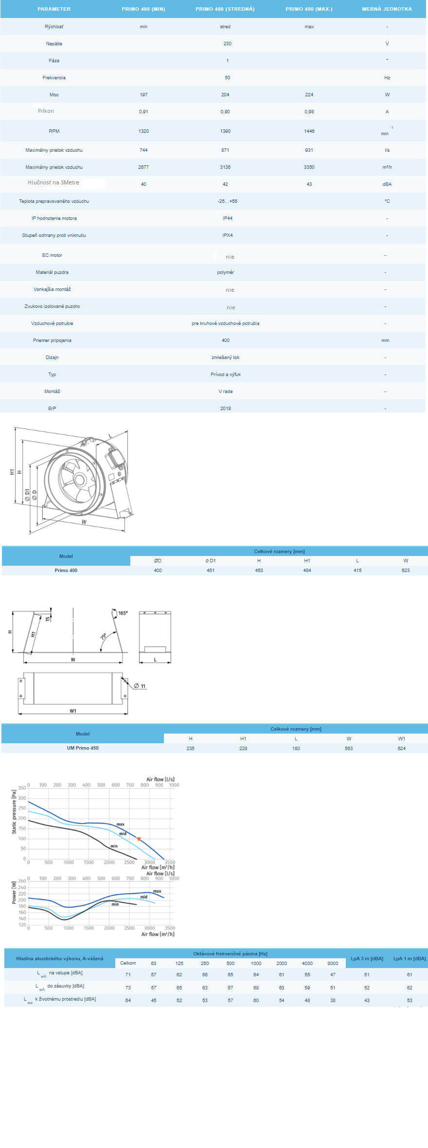 Poloradiálne odsávacie ventilátory Blauberg PRIMO 400 Ø 400mm trojrýchlostný výkon:2677-3136-3350m3/h napätie 230V pre prívodné a odvodné vetranie rôznych komerčných a priemyselných priestorov vyžadujúcich silné prúdenie vzduchu.