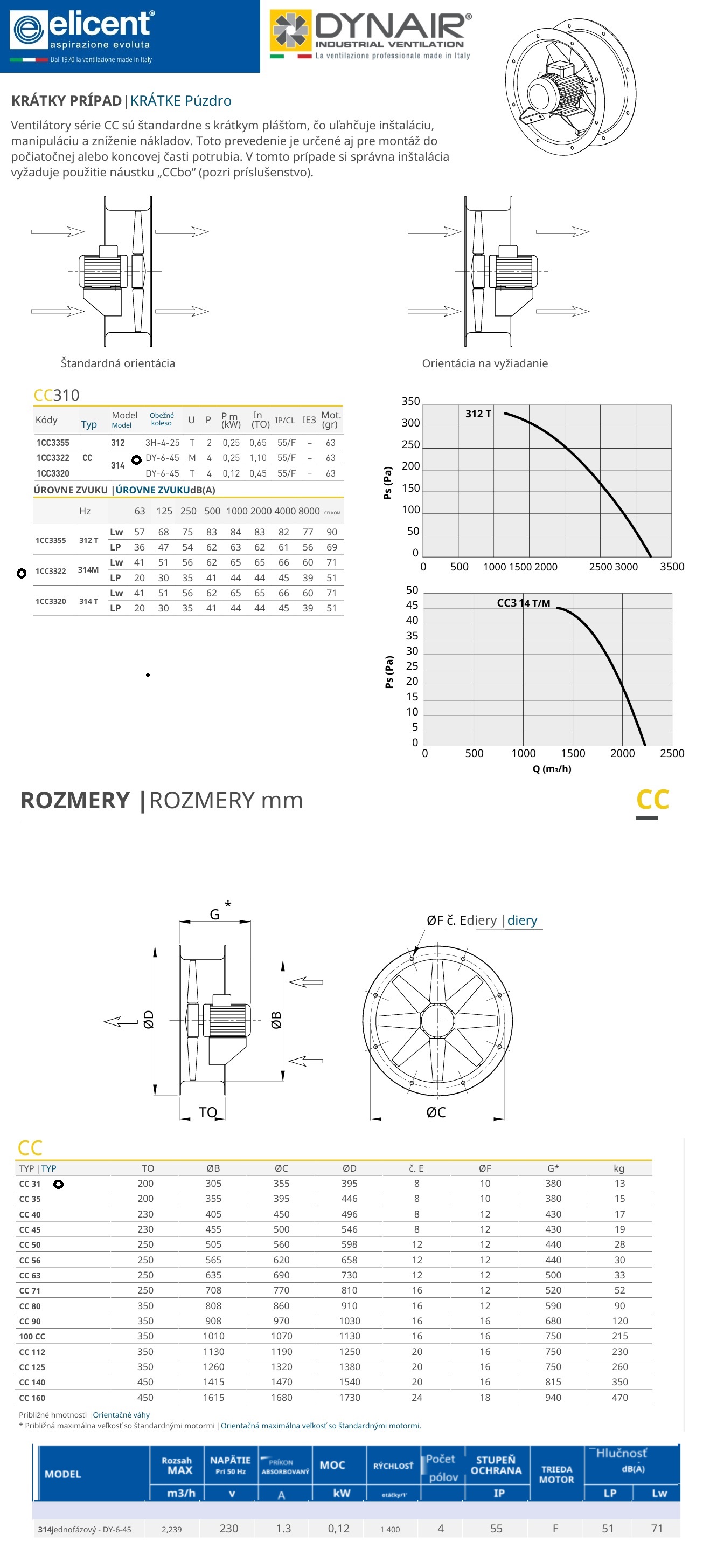 Potrubné axiálne ventilátory série ELICENT DYNAIR ELICENT DYNAIR CC 314 M 0.12kW DY-6-45 230V výkon 2239m3/h 230V sa