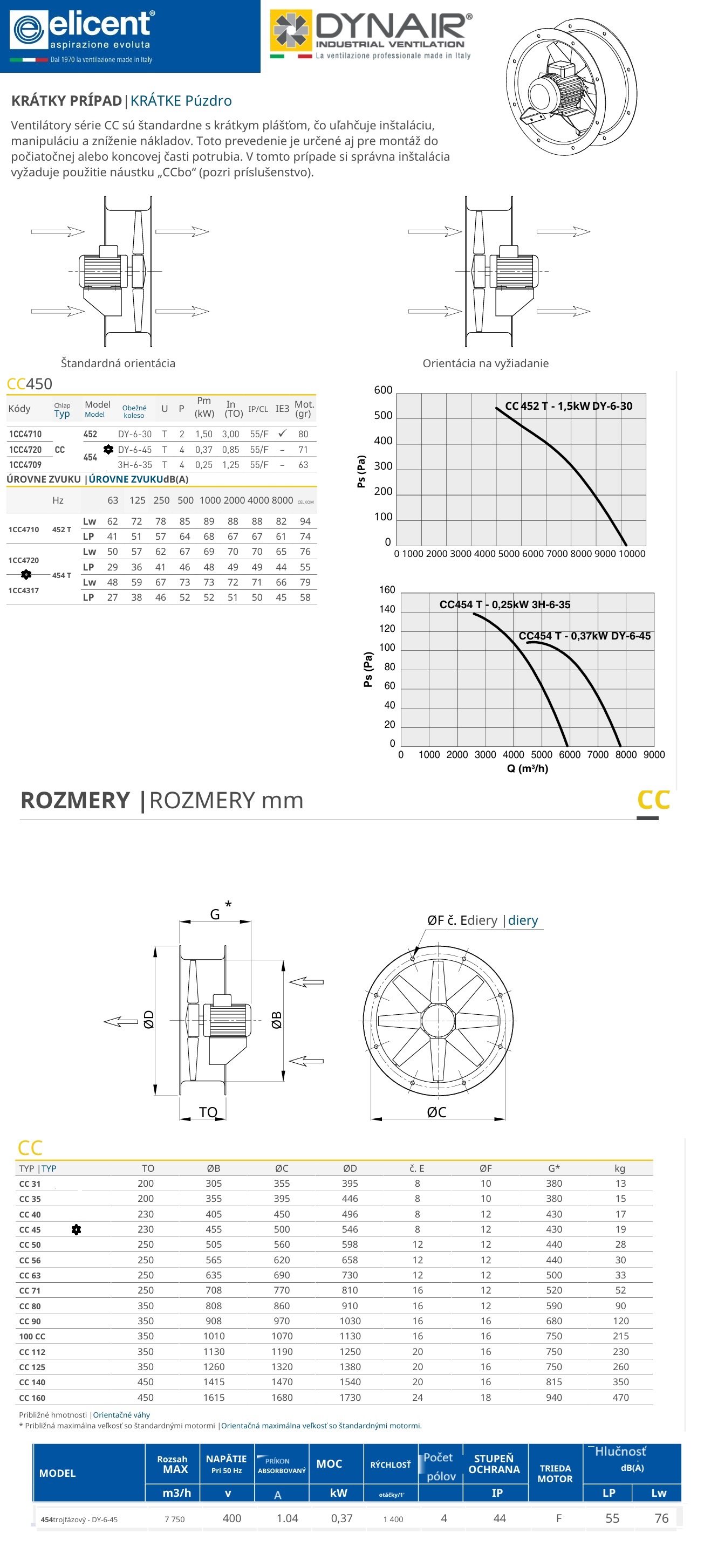 Potrubné axiálne ventilátory ELICENT DYNAIR CC 454 T 0.37kW DY-6-45  výkon 7750m3/h  400V sa