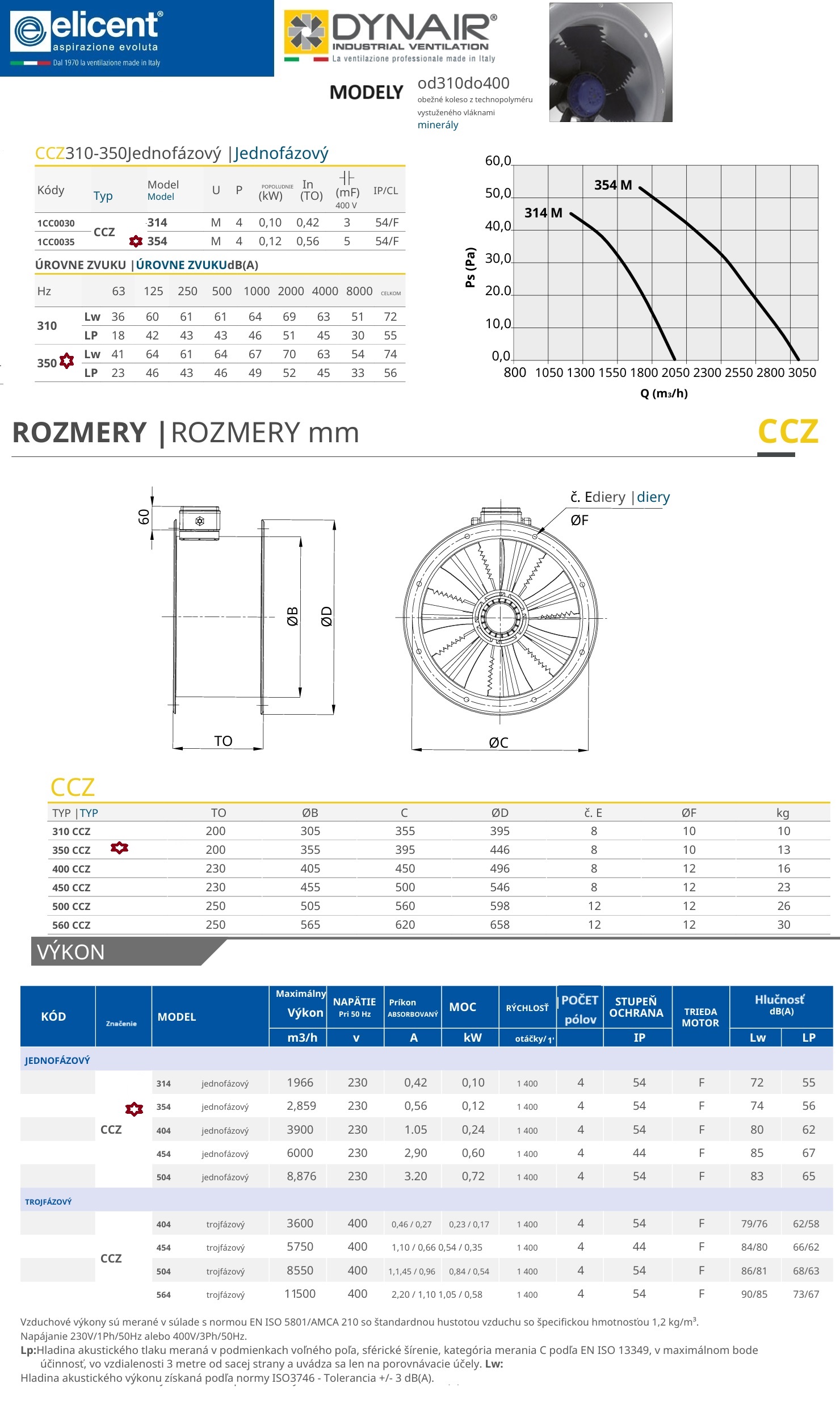 (modely 450 až 560). Vzduchové výkony sú merané v súlade s normou EN ISO 5801/AMCA 210 so štandardnou hustotou vzduchu so