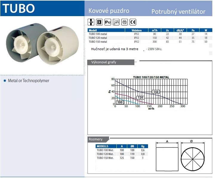 Potrubné ventilátory s kovovým puzdromvýkon 150m3/h priemer 120mm ELICENT TUBO sú axiálne