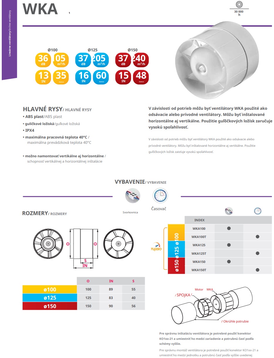 spoľahlivosť.Ochrana IPX4 maximálna pracovná teplota 40°C.&Označenie T Ventilátor je vybavený časovačom .