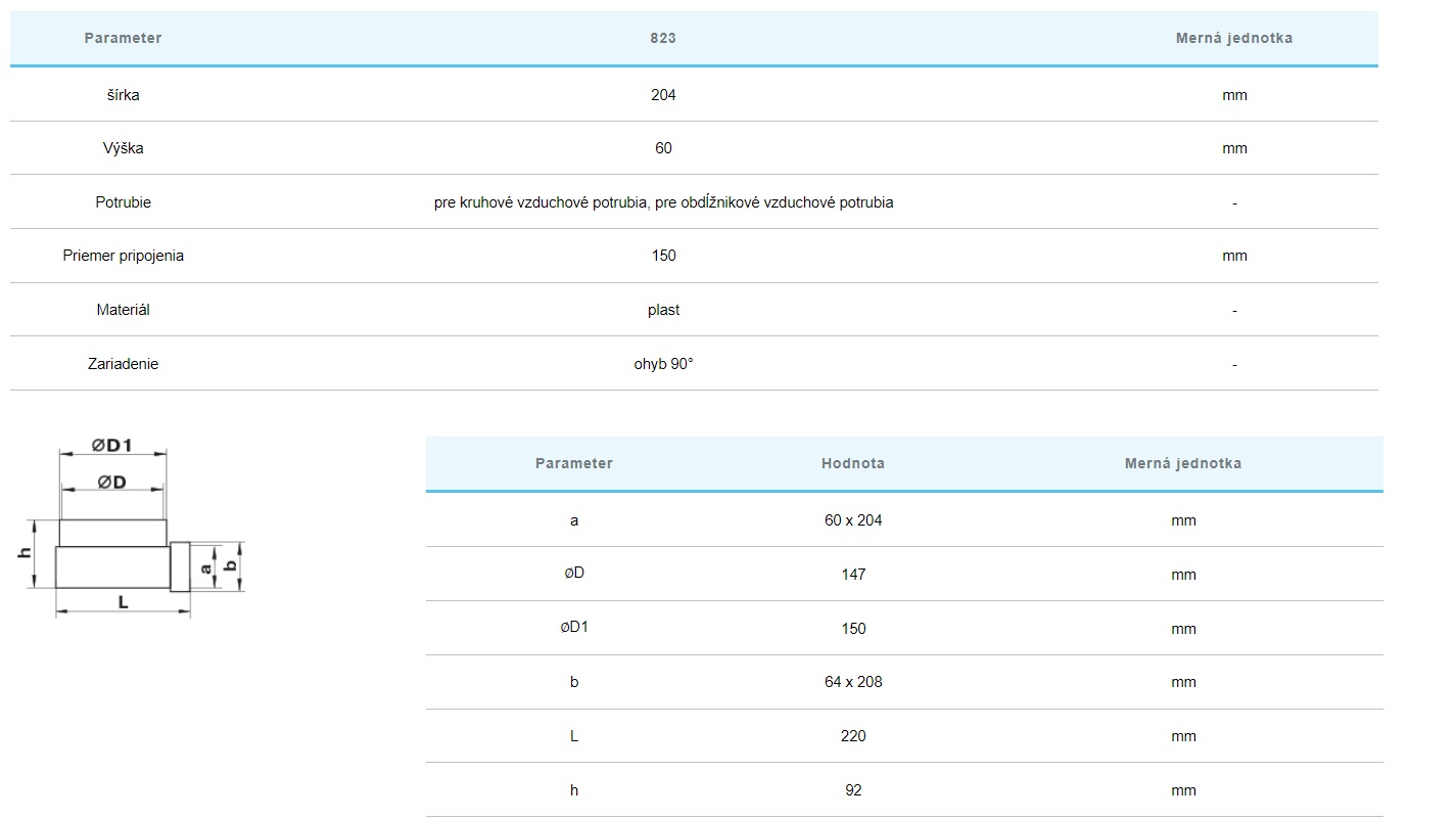 Pripojenie plochých a kruhových potrubí pod uhlom 90°.Plastová prechodka