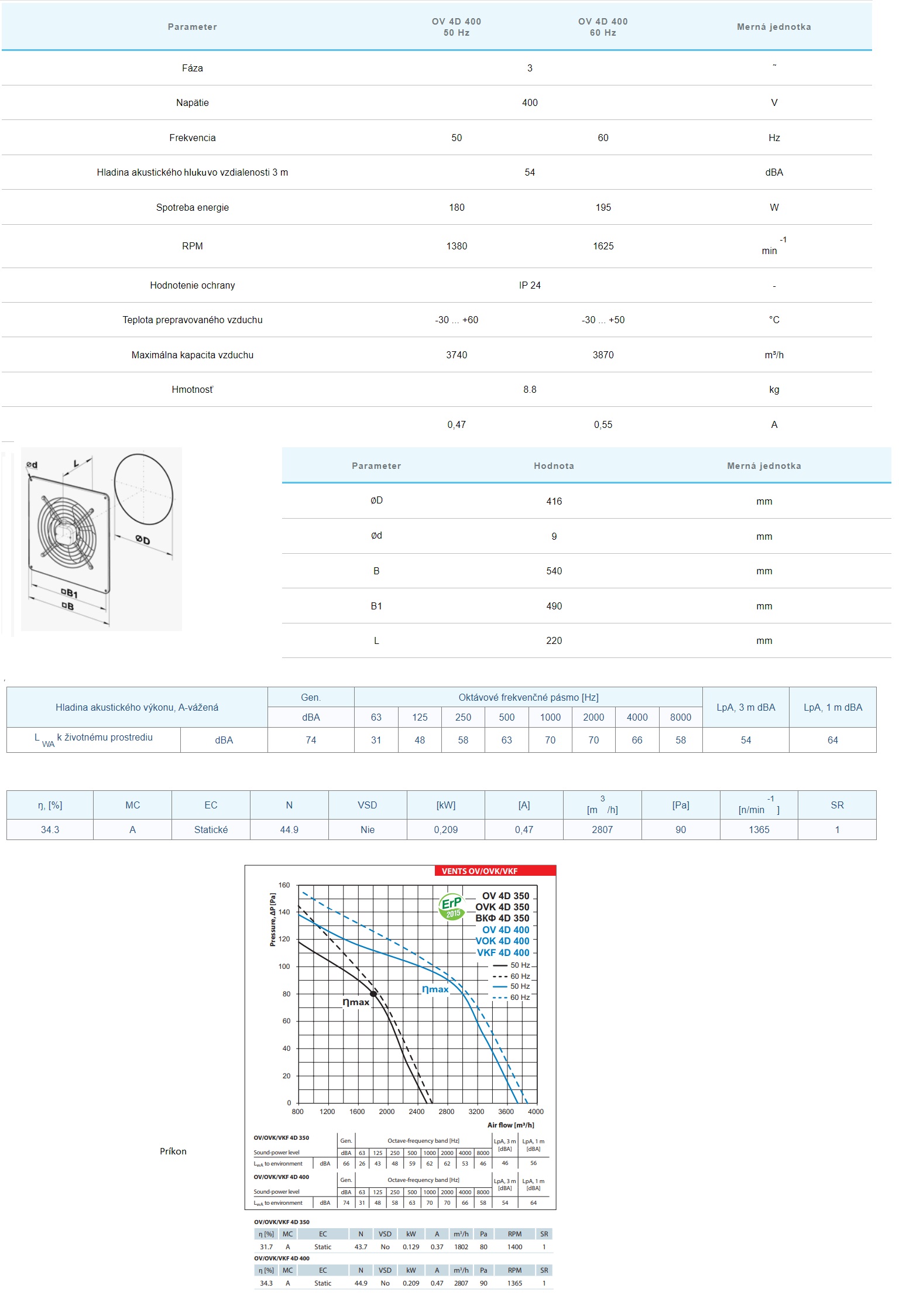 Priemyselný axiálny ventilátor OV 4D 400-3fázový výkon:3740m3/h priemer napojenia:417mm-Napätie380V