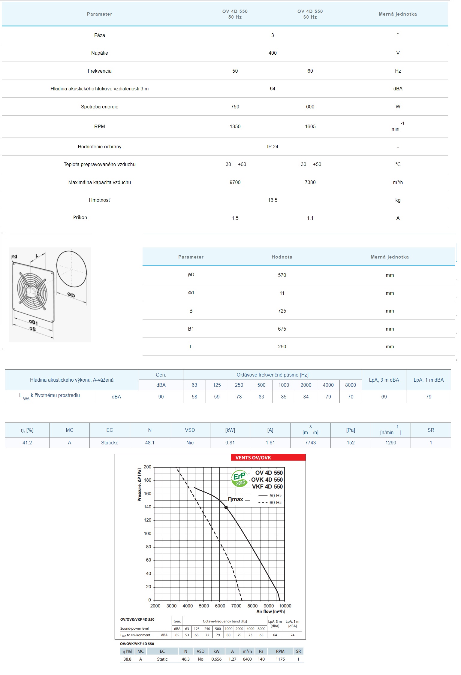 Priemyselný axiálny ventilátor nástenný VENTS OV4 D 550-3fázový výkon:9700m3/h priemer napojenia:570mm-Napätie380V sú určené pre prívodné a odsávacie vetracie systémy pre rôzne priestory, kde sa vyžaduje vysoký prietok vzduchu pri relatívne nízkom odpore systému. Ventilátory OV je možné použiť na priamy odvod vzduchu alebo pretlakovanie v systémoch odvetrávania dymu. OV ventilátory sú vhodné pre vonkajšiu montáž na stenu.DIZAJN Plášť ventilátora a obežné koleso sú vyrobené z ocele s polymérnym povlakom. Svorkovnica ventilátora OV je vybavená káblom pre diaľkové pripojenie. MOTOR Obežné kolesá sú poháňané štvorpólovými, trojfázovými asynchrónnymi motormi s vonkajším rotorom a vstavanou tepelnou ochranou proti prehriatiu v závislosti od modelu. Guličkové ložiská v motore poskytujú dlhú životnosť navrhnutú na minimálne 40 000 hodín. Krytie motora IP44-IP54. KONTROLA RÝCHLOSTI Plynulá alebo skoková regulácia otáčok sa vykonáva pomocou tyristorového alebo autotransformátorového regulátora. K jednému regulátoru je možné pripojiť viacero ventilátorov, ak celkový výkon a prevádzkový prúd nepresiahnu menovité hodnoty regulátora. MONTÁŽ Ventilátor sa inštaluje na povrch steny pomocou štvorcovej montážnej dosky série OV .Ventilátor je napájaný cez externú vzdialenú svorkovnicu. Napájanie a inštaláciu je potrebné vykonať v súlade s návodom a schémou zapojenia na svorkovnici