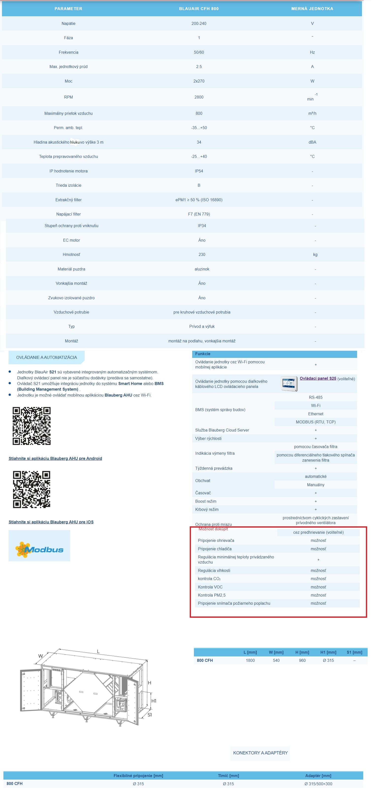 Voliteľná vonkajšia inštalácia s vonkajšou montážnou súpravou. Webové rozhranie, MODBUS, výstupy pre voliteľné DX alebo Hydronic chladenie / kúrenie.