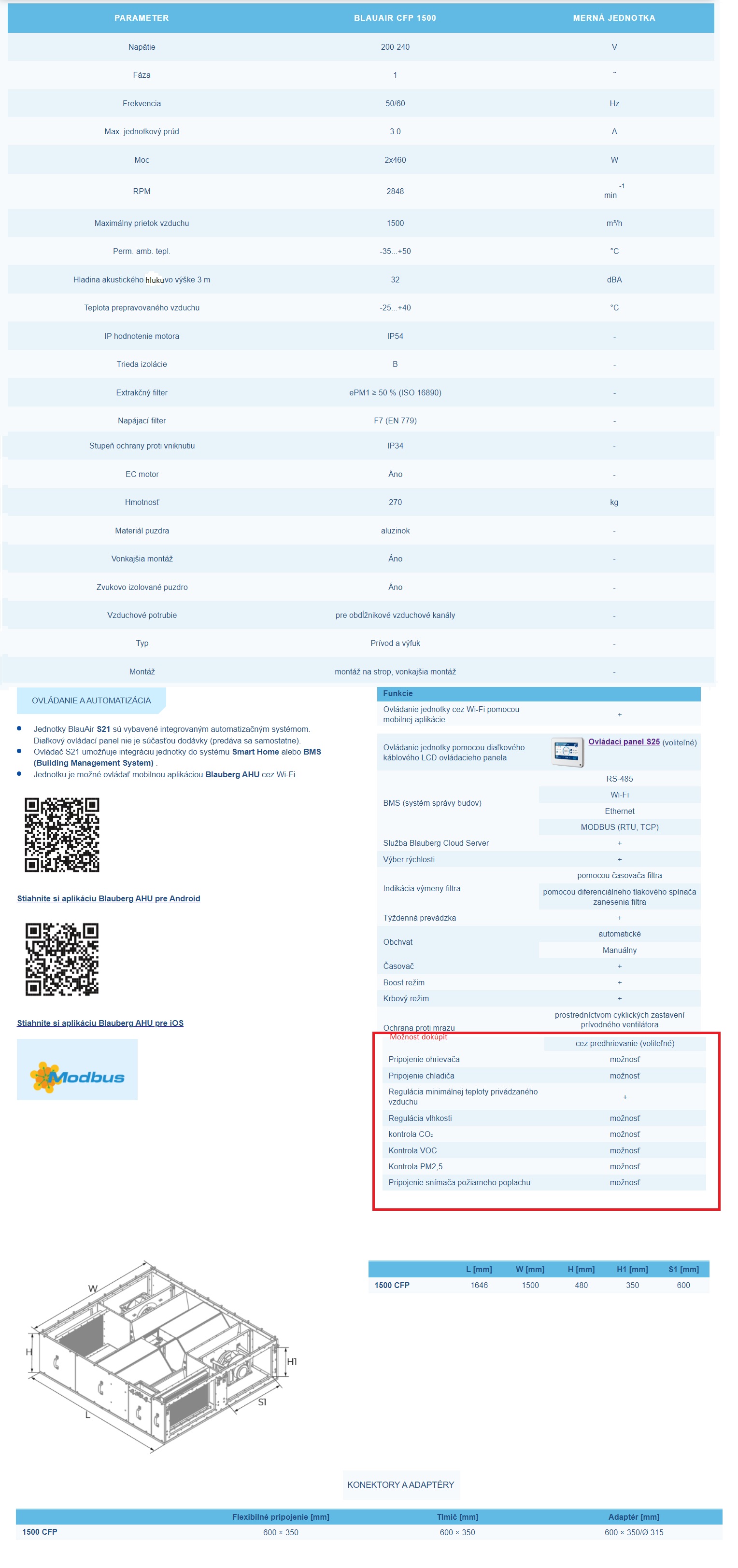 Priemyselný rekuperátor podstropný BlauAir BL 02 CFP 1500HECDX S25 1500m3/h-predohrev elektrický+chladič s riadiacou jednotkou S 25 obsahuje vysokoúčinné EC ventilátory s dozadu zakriveným vonkajšími lopatkami. Integrované ovládacie prvky typu plug-and-play.