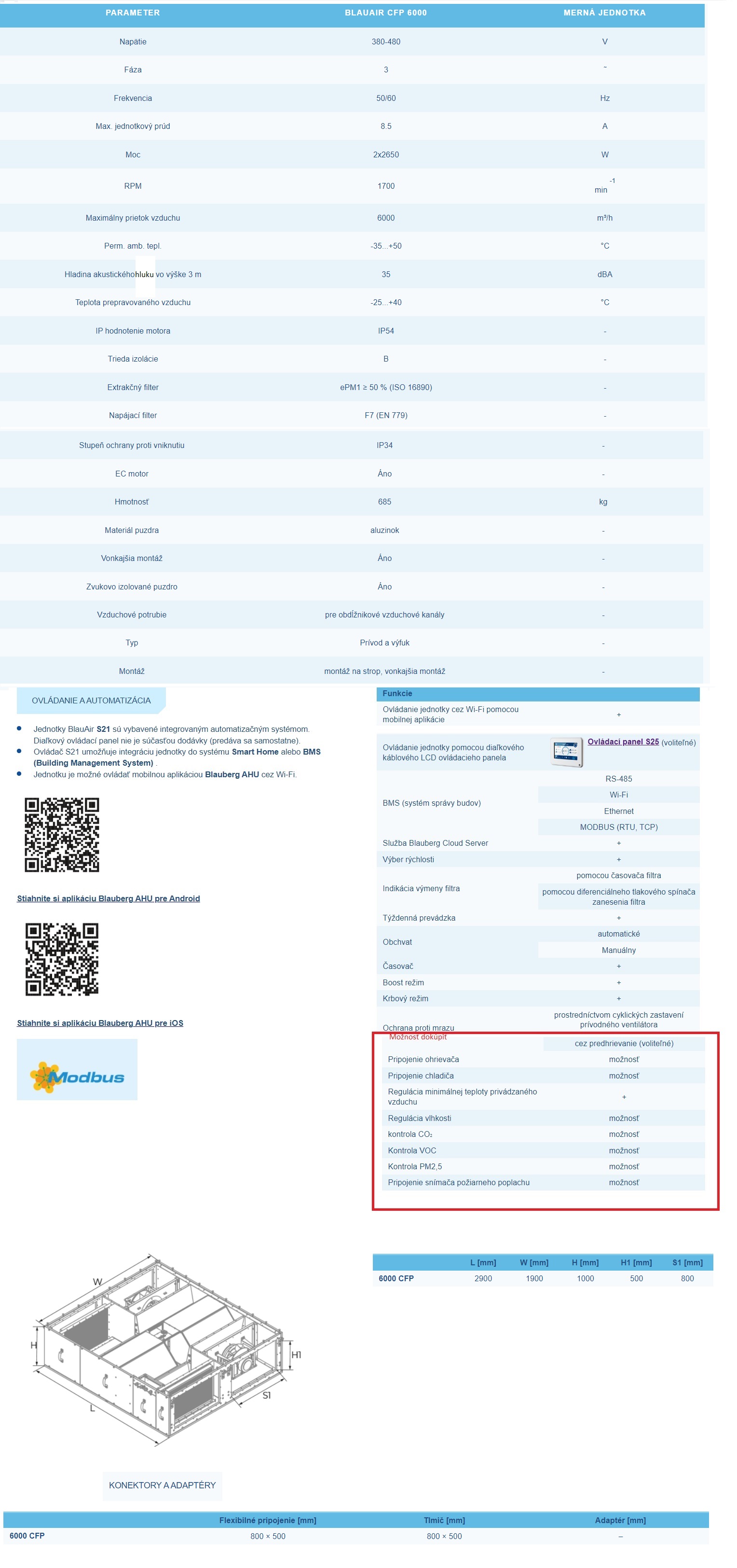 Priemyselný rekuperátor podstropný BlauAir BL 07 CFPHW 6000 S25 6000m3/h+vodný ohrievač s riadiacou jednotkou S 25 obsahuje vysokoúčinné EC ventilátory s dozadu zakriveným vonkajšími lopatkami. Integrované ovládacie prvky typu plug-and-play.