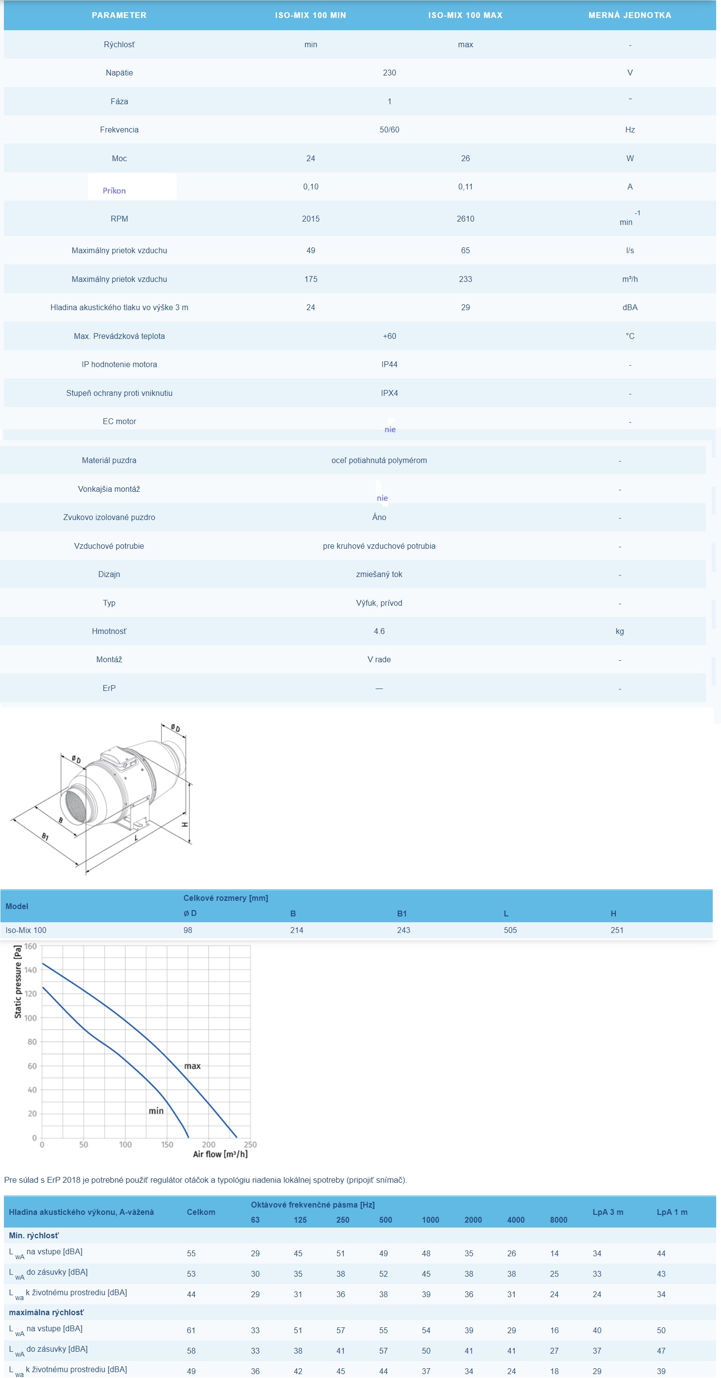 Priemyselný ventilátor Blauberg Iso-Mix 100 výkon Ø 100mm-175-233m3/h dvojrýchlostný napätie 230V.Priemyselné ventilátory pre