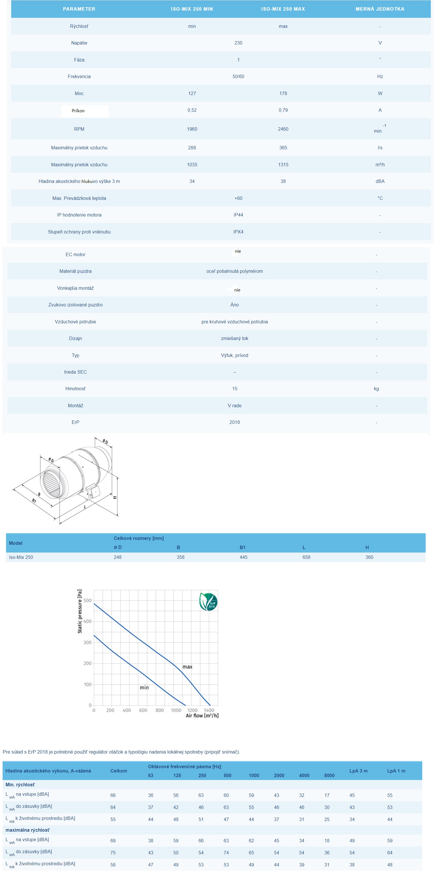 Priemyselný ventilátor Blauberg Iso-Mix 250 výkon Ø 250mm-1035-1315m3/h dvojrýchlostný napätie 230V.Priemyselné ventilátory  pre