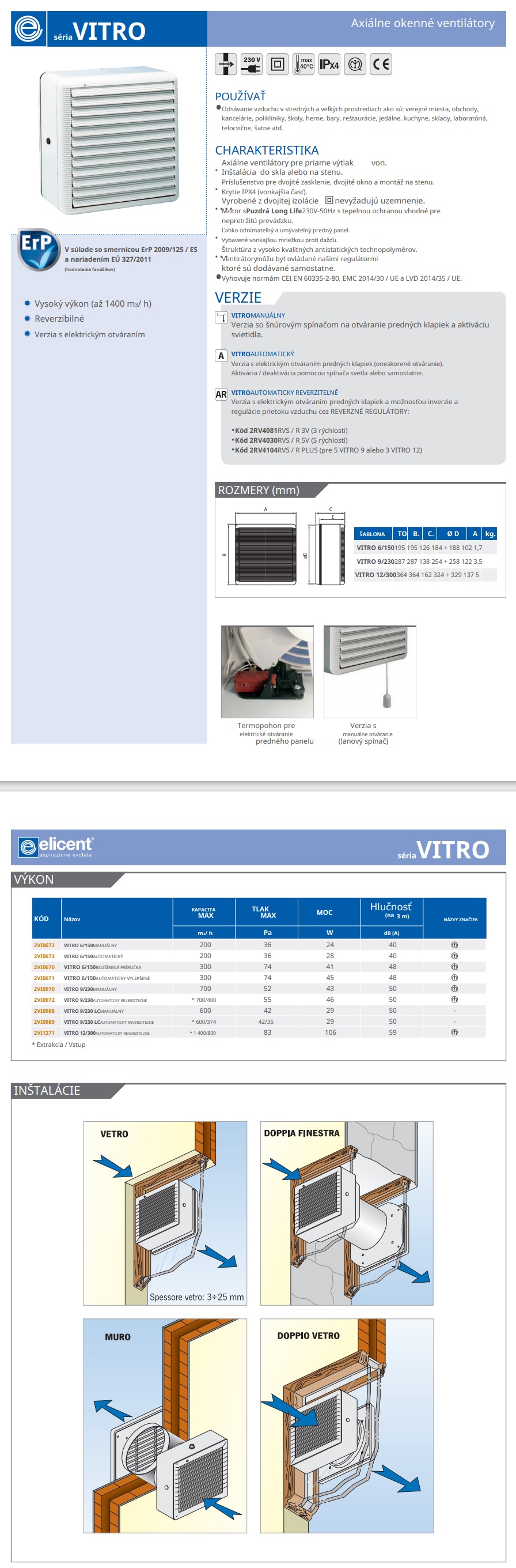atď.Priemyselné ventilátory na stenu a do okna VITRO vhodná pre montáž