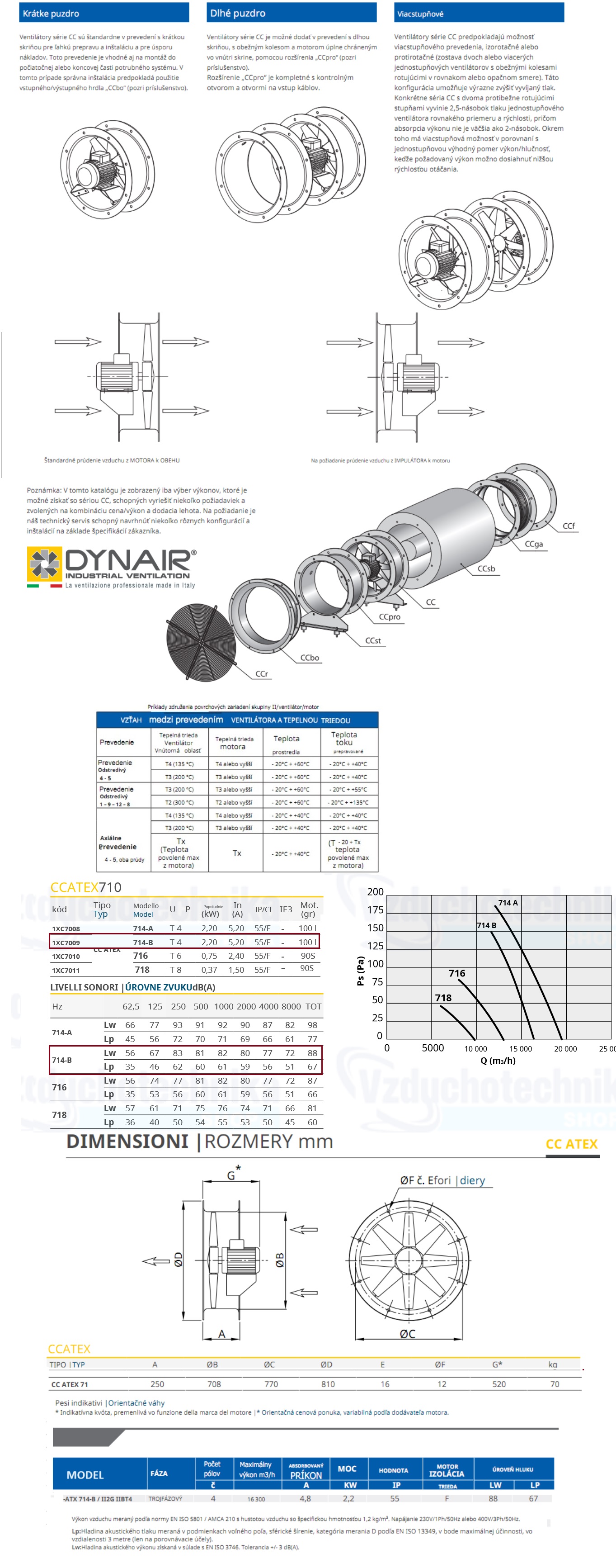 Protivýbušné potrubné axiálne ventilátory DYNAIR CC-ATX 714-B- T4-400V II2G IIB T4 /ochrana motora Ex Db/ výkon 16300m3/h 4-pólový sú