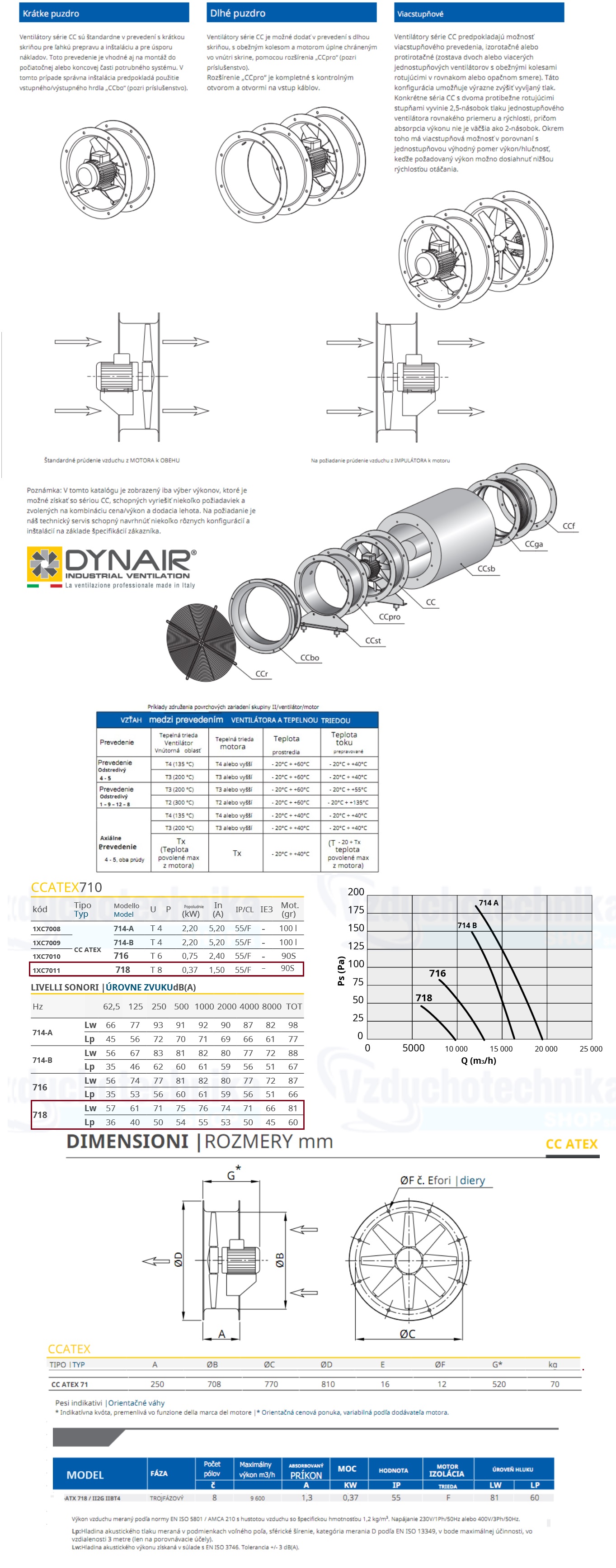 Protivýbušné potrubné axiálne ventilátory DYNAIR CC-ATX 718-T8-400V II2G IIB T4 /ochrana motora Ex Db/ výkon 9600 m3/h 8-pólový sú