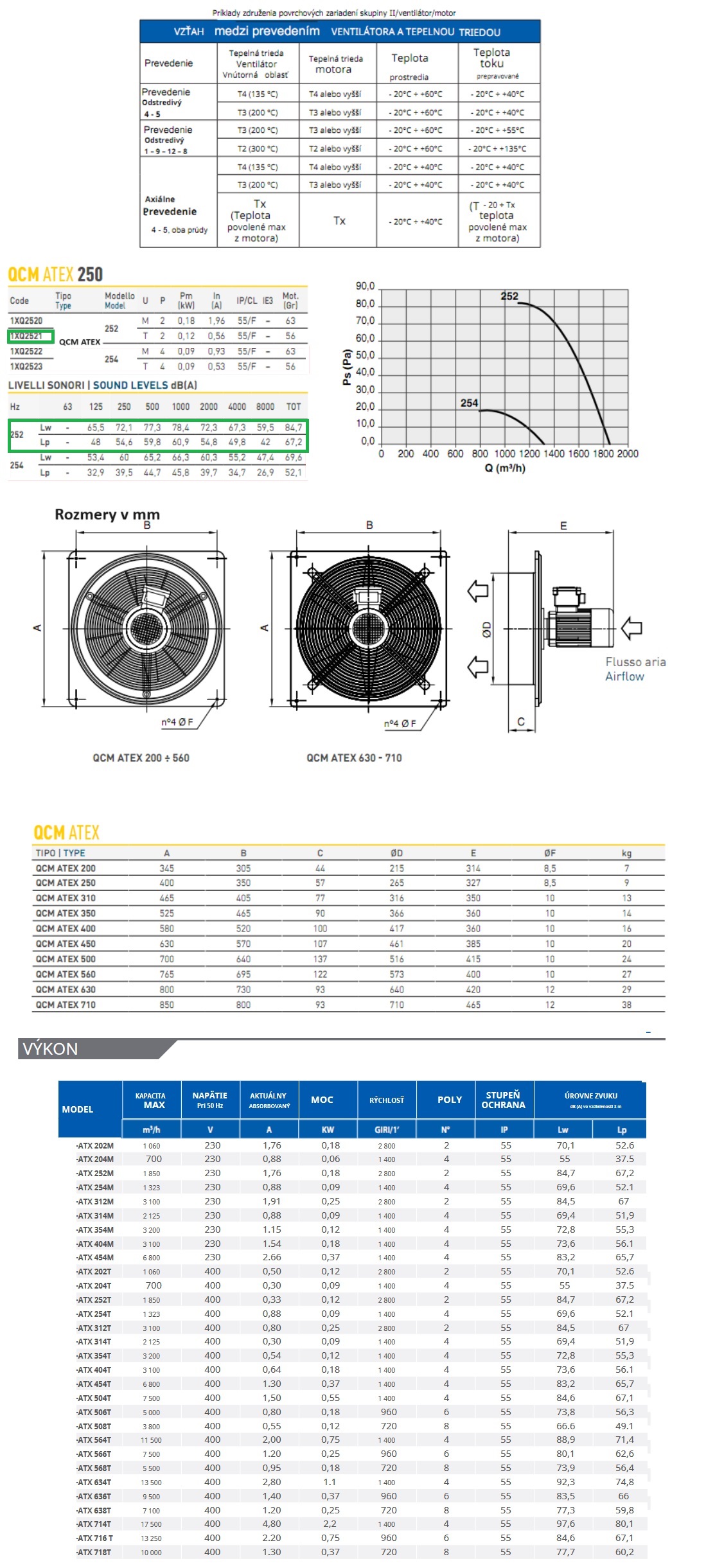 Protivýbušný axilálny ventilátor Dynair QCM-ATX 252T-400V II2G IIB T4 /ochrana motora Ex Db/ výkon 1850m3/h Protivýbušný axilálny ventilátor radu QCM ATEX sú