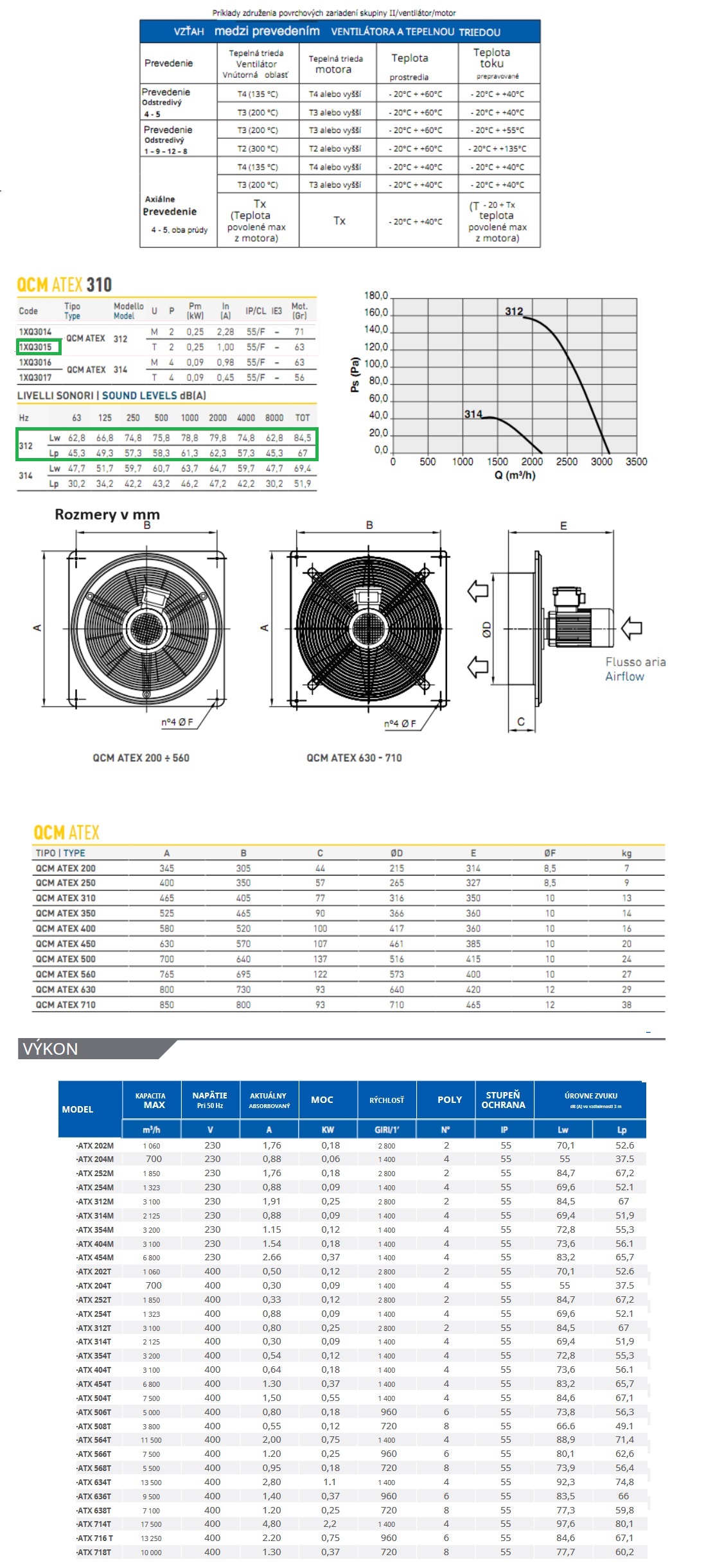 Protivýbušný axilálny ventilátor Dynair QCM-ATX 312T-400V II2G IIB T4 /ochrana motora Ex Db/ výkon 3100m3/h Protivýbušný axilálny ventilátor radu QCM ATEX sú