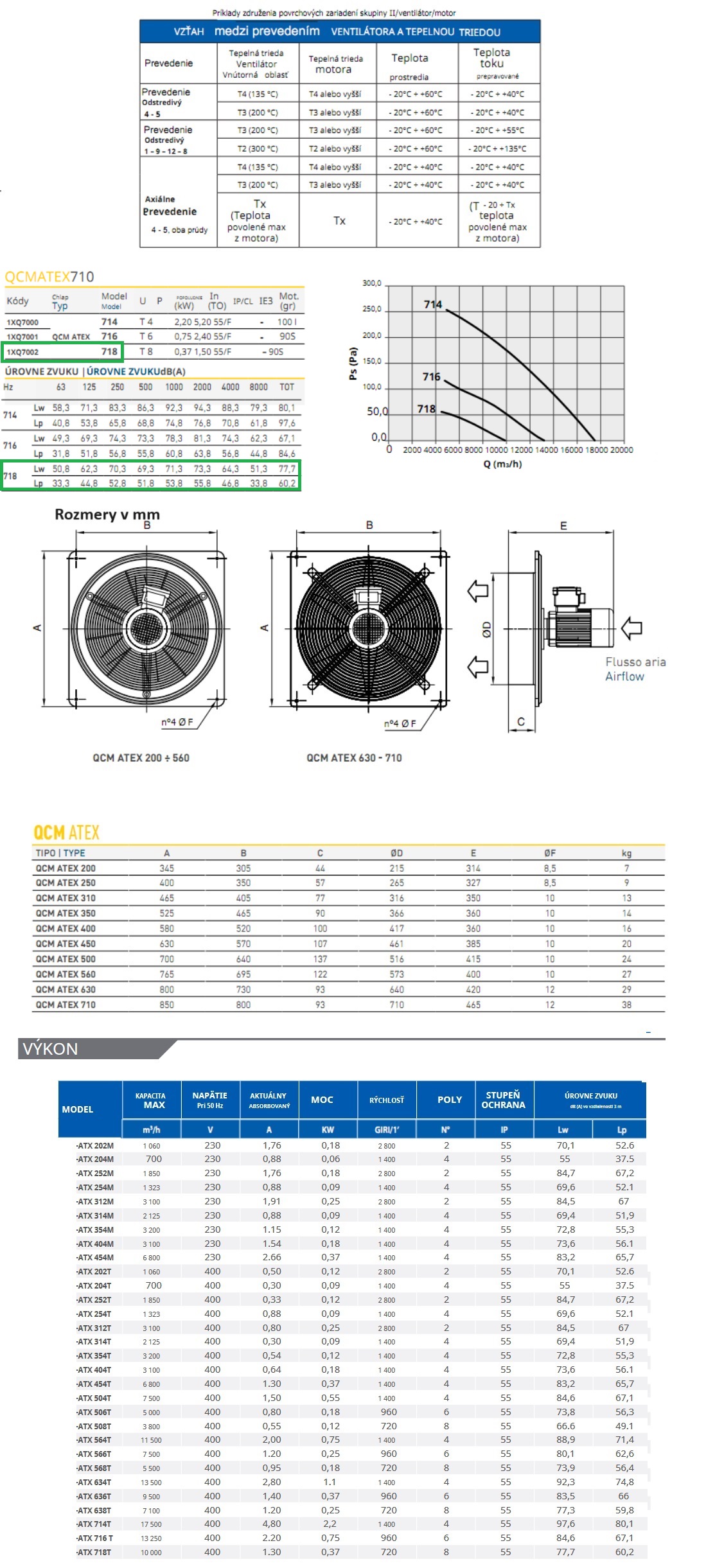 Protivýbušný axilálny ventilátor ELICENT Dynair QCM-ATX 718 T-400V II2G IIB T4 /ochrana motora Ex Db/ výkon 10 000 m3/h Protivýbušný axilálny ventilátor radu QCM ATEX sú