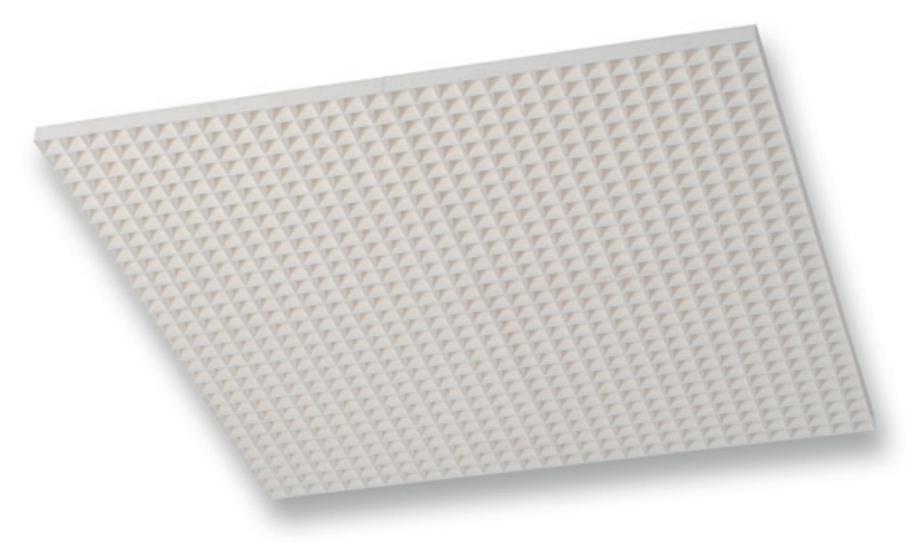 Plastová vetracia mriežka s rozmermi 14,3×14,3 mm, raster kazety 1195×595 a 80% volným prierezom.