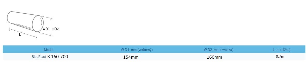 70 centimetrové potrubie priemer 160mm pre rekuperátory Blauberg Vento Expert.Používa sa pri hrubších stenách ako je 47centimetrov ktorá je výbavou balenia u rekuperátorov Blauberg Vento Expert