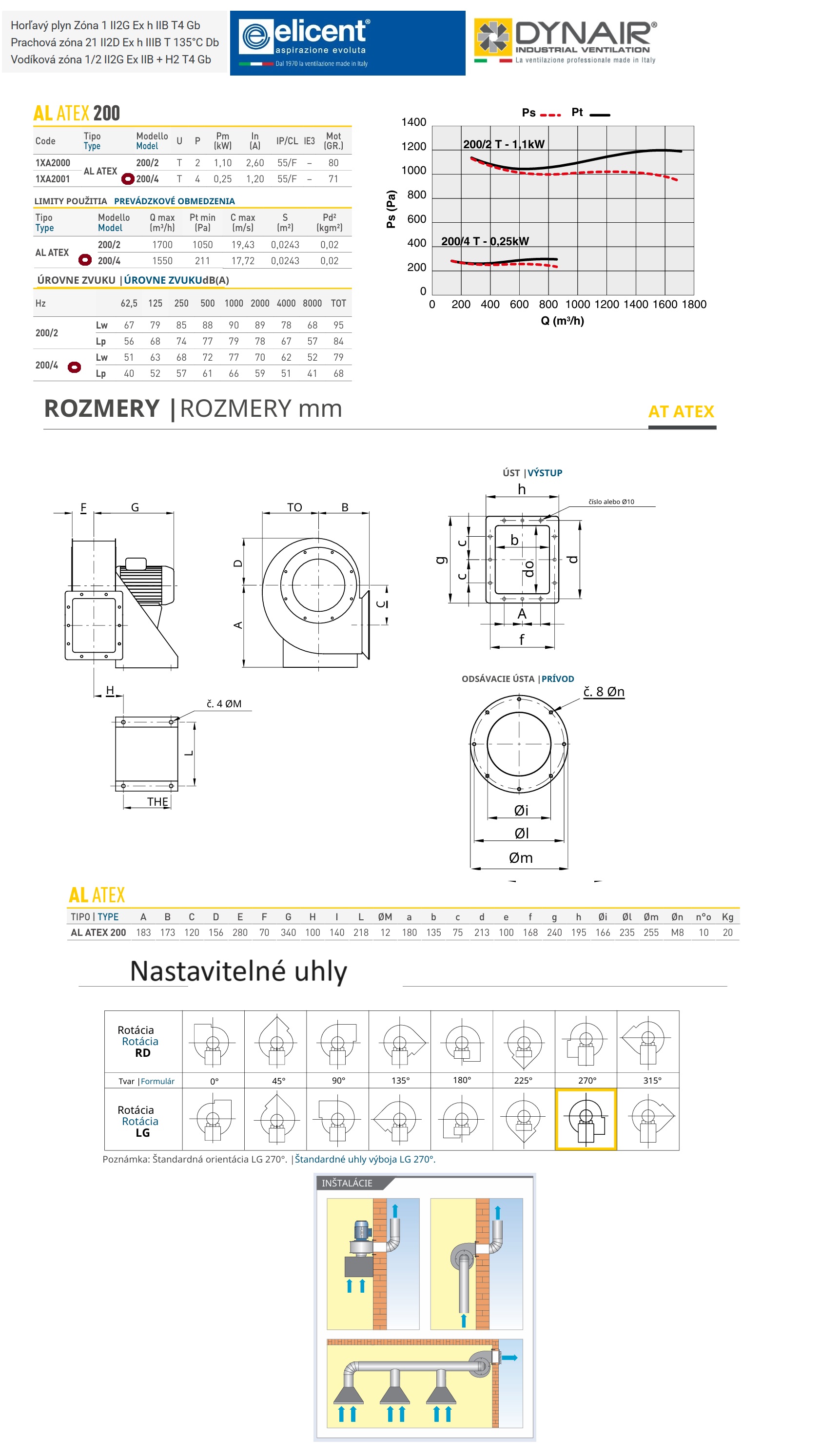 Radiálne ventilátory ELICENT DYNAIR AT ATEX 200 /4T-400V II2G IIB T4 /ochrana motora Ex Db/ výkon 1550m3/h 4-pólový 400V sú