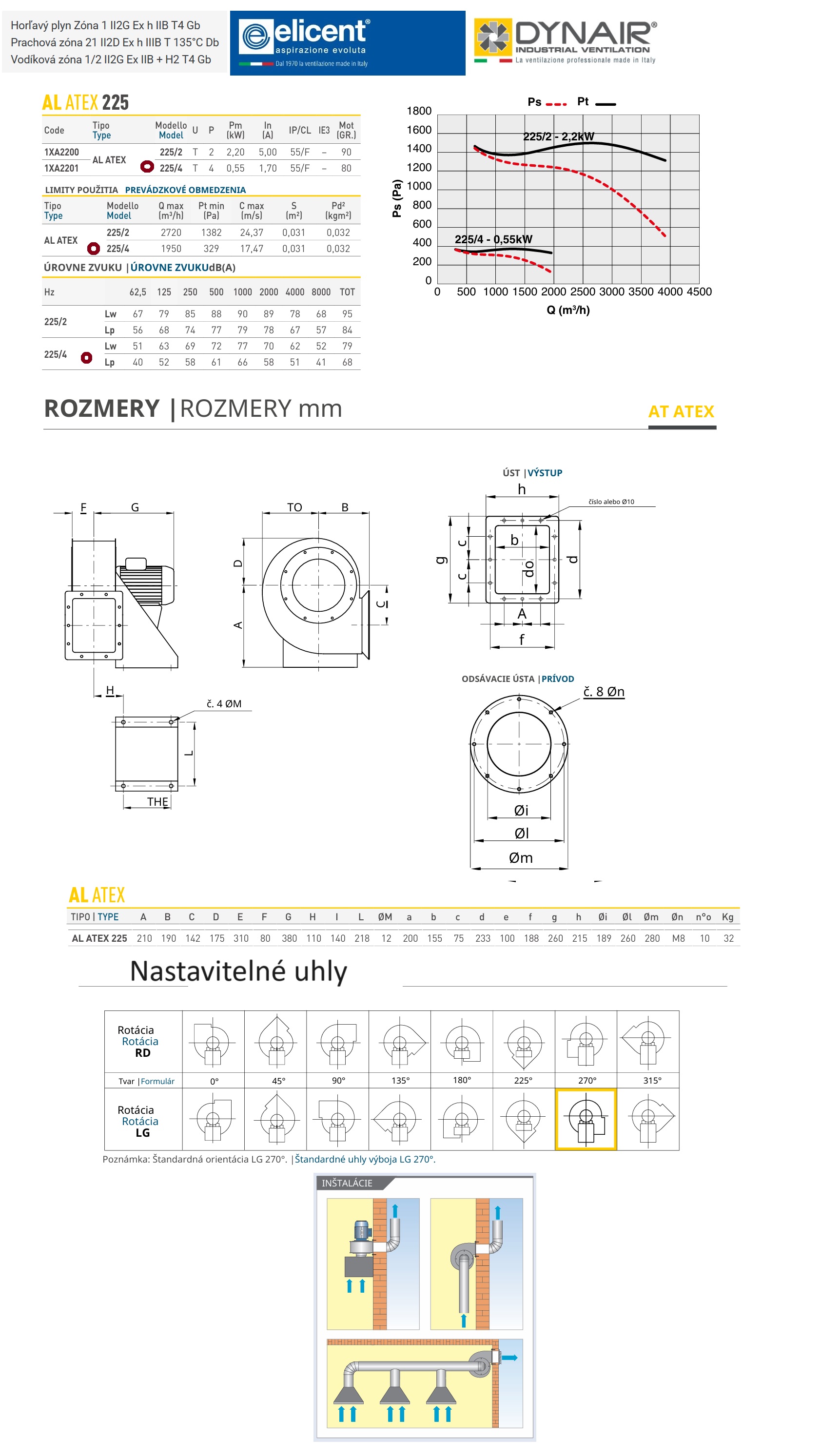 Radiálne ventilátory ELICENT DYNAIR AT ATEX 225 /4T-400V II2G IIB T4 /ochrana motora Ex Db/ Radiálne ventilátory ELICENT D...