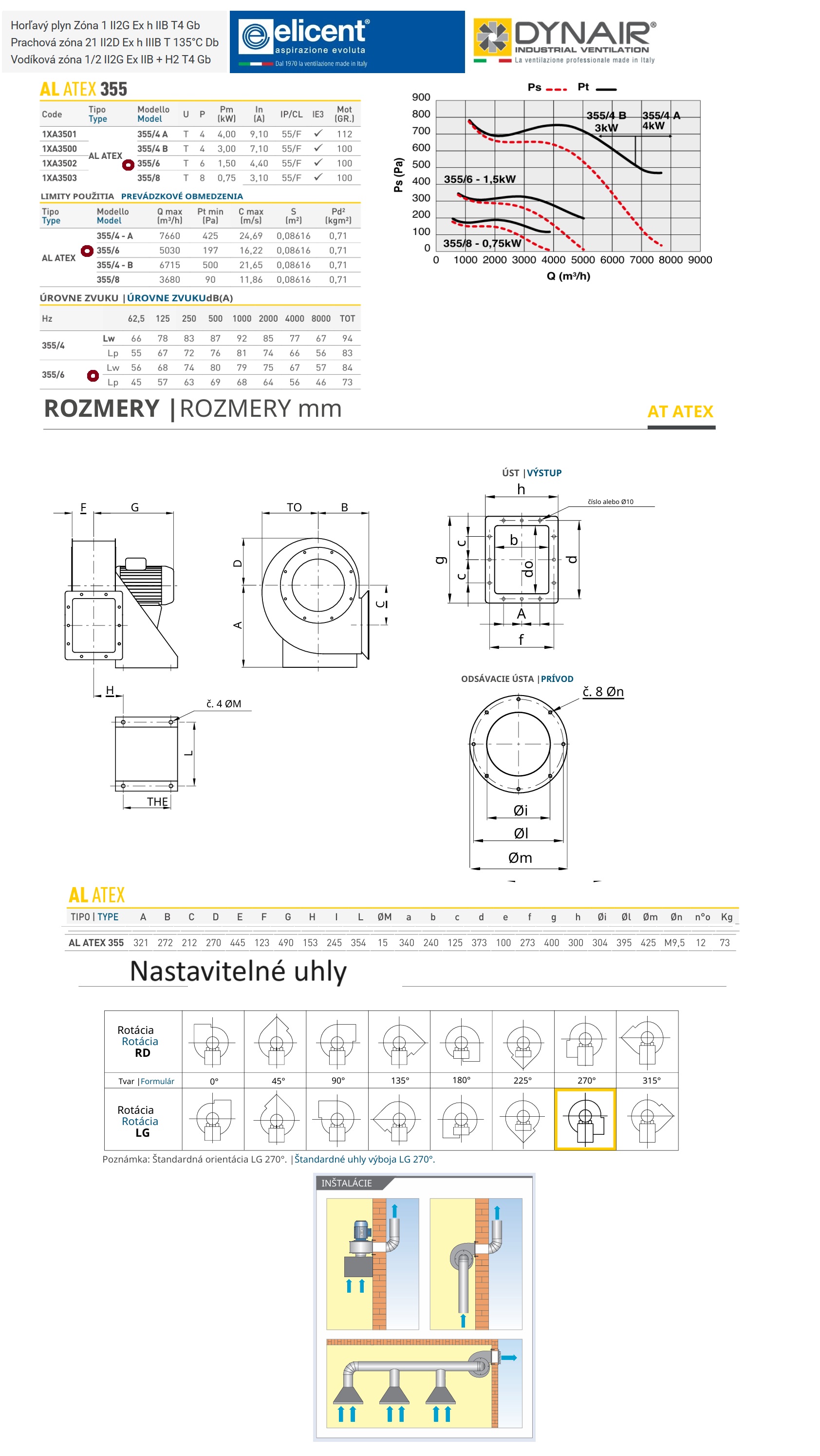 Radiálne ventilátory ELICENT DYNAIR AT ATEX 355 /6T-400V II2G IIB T4 /ochrana motora Ex Db/ výkon 5030m3/h 6-pólový 400V sú