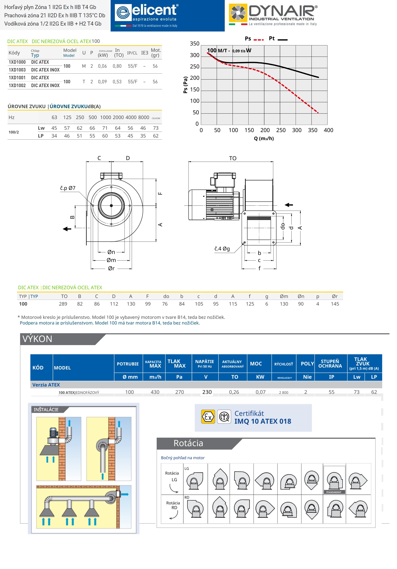 Radiálne ventilátory radu DYNAIR DIC ATEX 100 M2-230V II2G IIB T4 /ochrana motora Ex Db/ výkon 430m3/h  230V  2-pólové Radiálne ventilátory radu DIC ATEX a DIC ATEX