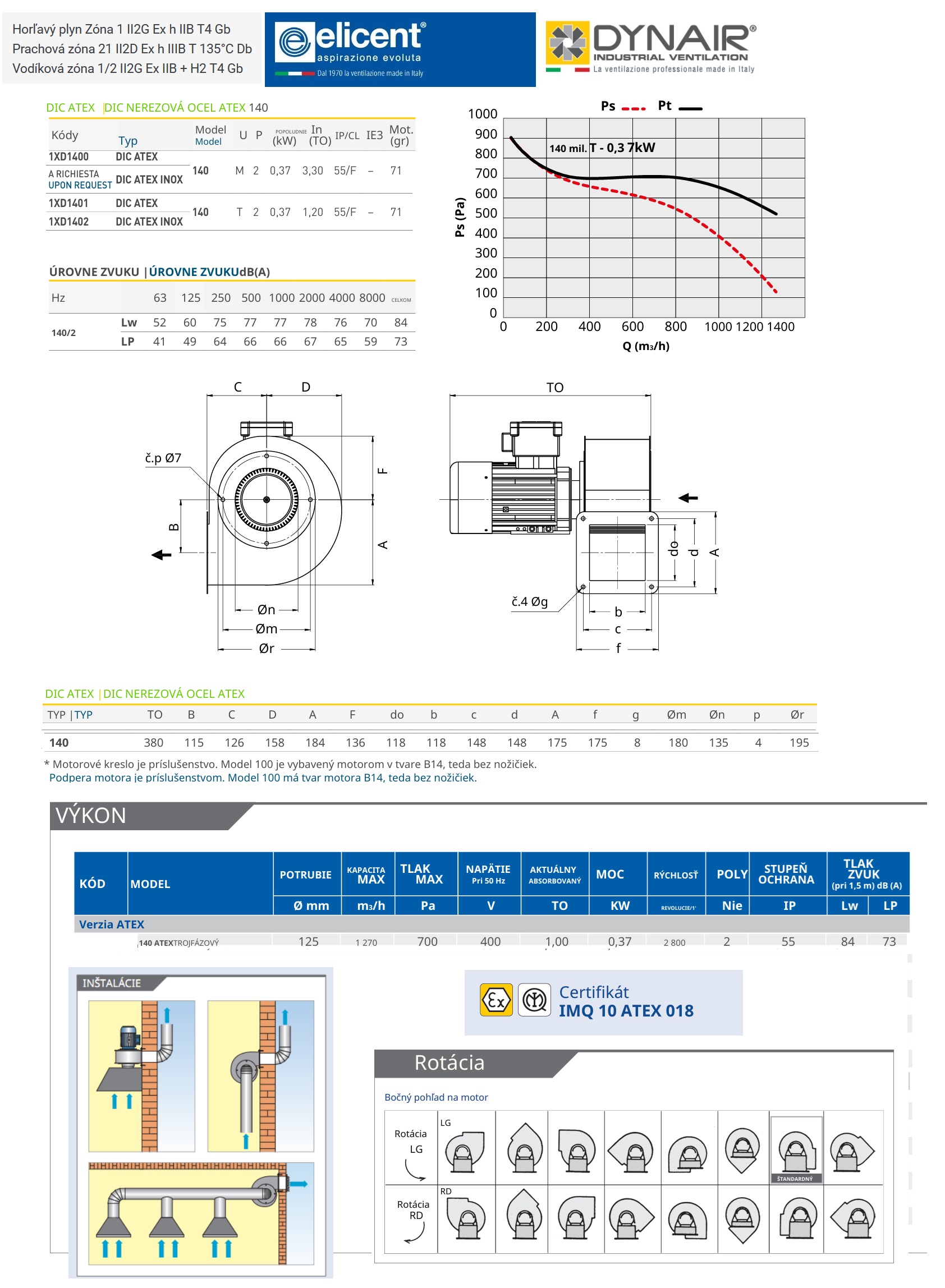 Radiálne ventilátory radu DYNAIR DIC ATEX 140 T2-400V II2G IIB T4 /ochrana motora Ex Db/ výkon 1270m3/h 400V 2- pólové priemer napojenia 140mm.Radiálne ventilátory radu DIC ATEX a DIC ATEX