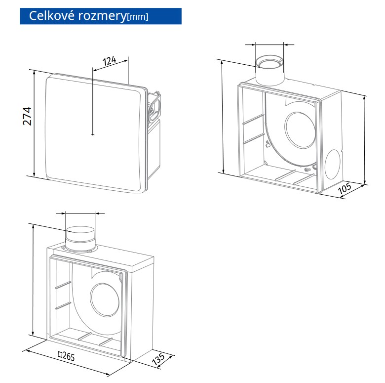 Radiálny ventilátor BLAUBERG VALEO 75/100m3/h dvojrýchlostný motor zápustný SNÍMAČ VLHKOSTI (VALEO…H)pre systémy odsávacieho vetrania inštalované vo výškových budovách a priestoroch.