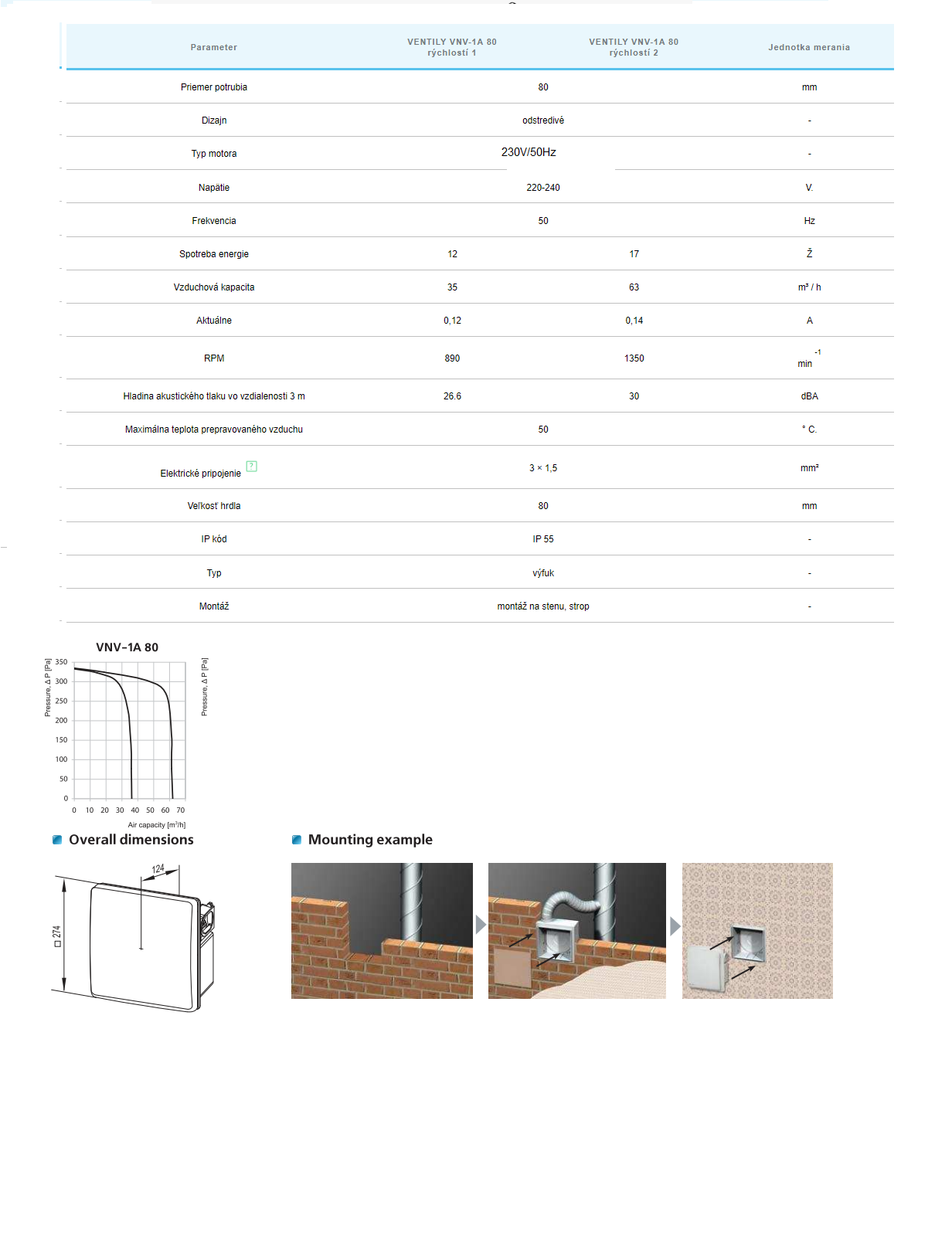 Radiálny ventilátor výkon 35-63m3/h priemer 80mm– ventilátor s regulovaným časovačom..Výfukové vetranie výškových bytových a nebytových priestorov.