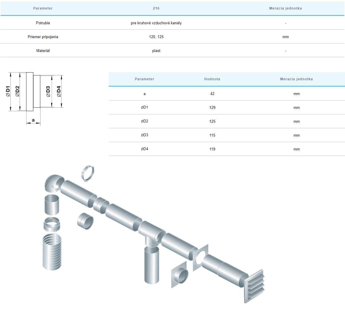 Redukcia kód 216 Ø 120mm/na Ø125mm