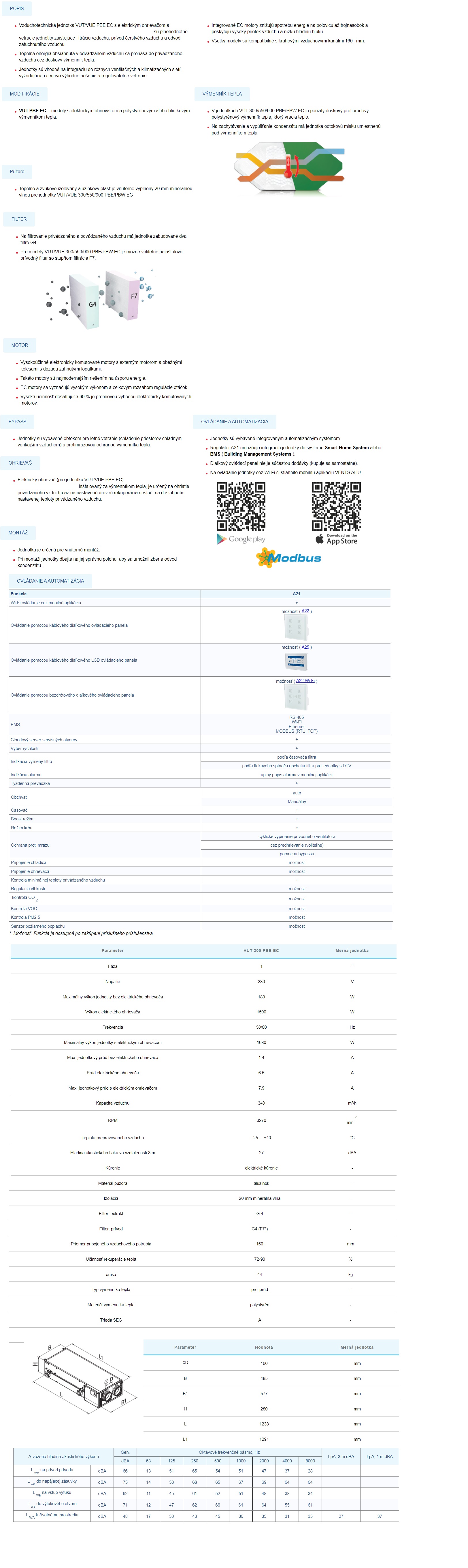 Rekuperačná jednotka VENTS VUT 300 PBE EC A 21 WIFI s elektickým predohrevom.Riadenie smartfónom alebo si vyberte manuálne ovládanie dole v odporúčame dokúpiť.Riadenie cez smartfon alebo možnosť výberu riadiacej jednotky A22 ,A25,A22 WIFI