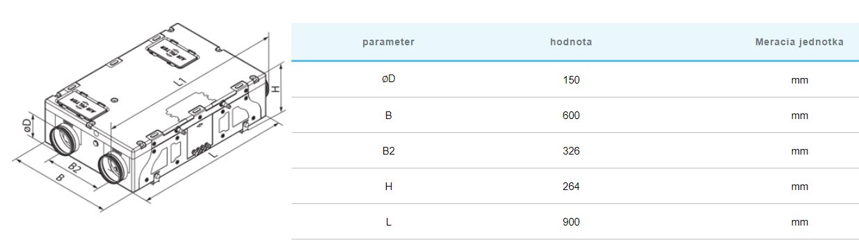 okrúhlymi vzduchovými kanálmi Ø 150 mm.Účinnosť rekuperácie tepla až 94%.