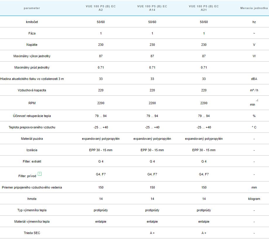 - VUE 180 P5 (B) EC jednotky sú vybavené tepelným výmenníkom protiprúde entalpia v jadre.